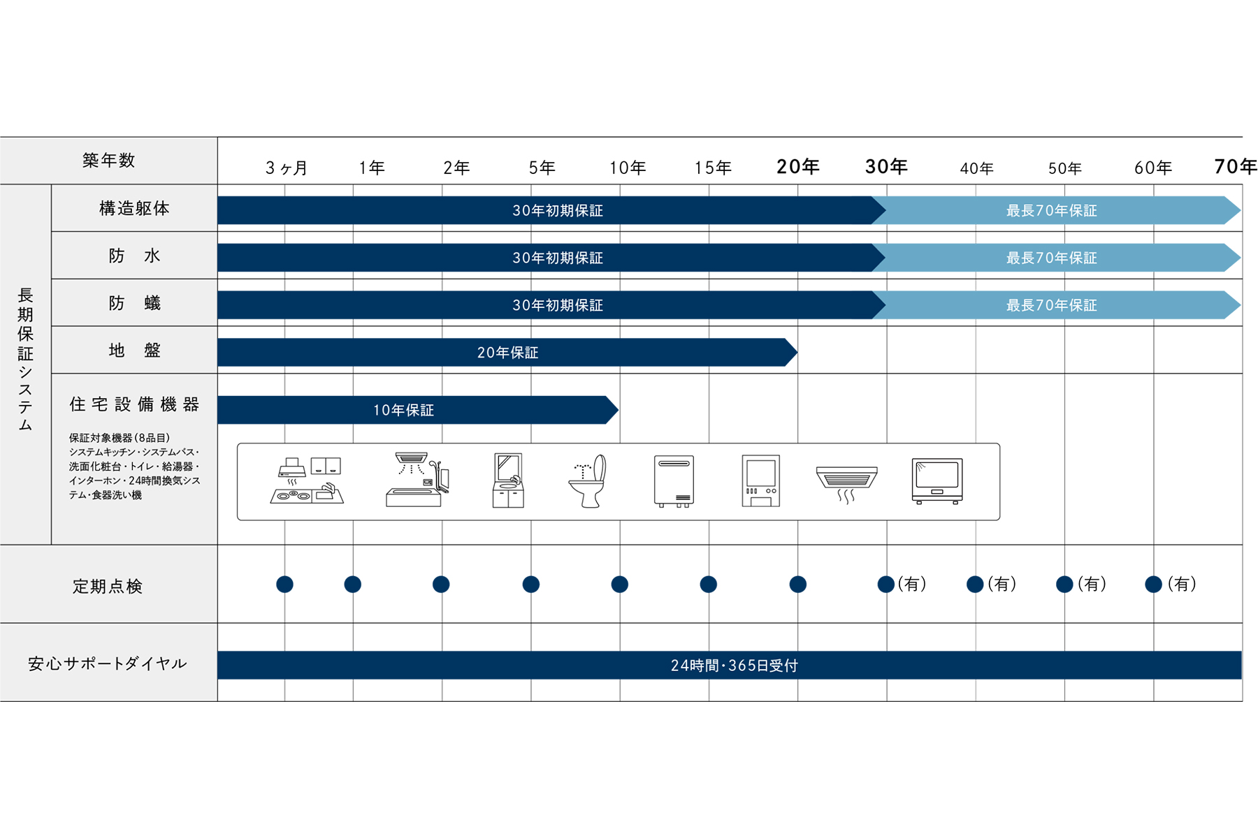 初期30年、最長70年の長期保証システム