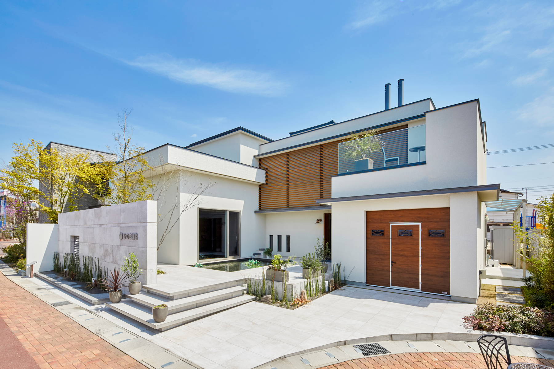 LDKに併設されたコートヤード(中庭)が、鮮やかな光と開かれた空間を演出。屋外と屋内がつながる中庭は、プライベートを守りつつ、家族の団らんを生み出します。外観に奥行きが出ることで重厚感や落ち着きを与えています。人気プランとして好評を博しているのは、あなただけのオリジナルな間取りです。