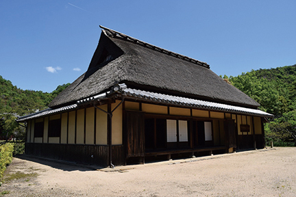 六甲山南麓で唯一現存する江戸時代の茅葺民家。阪神淡路大震災で全壊し芦屋市に寄贈、その後兵庫県が譲り受け「尼崎の森中央緑地」に移築復元した。現在は里山暮らしの体験施設として運営され、かまどや五右衛門風呂、大戸などを備えている。