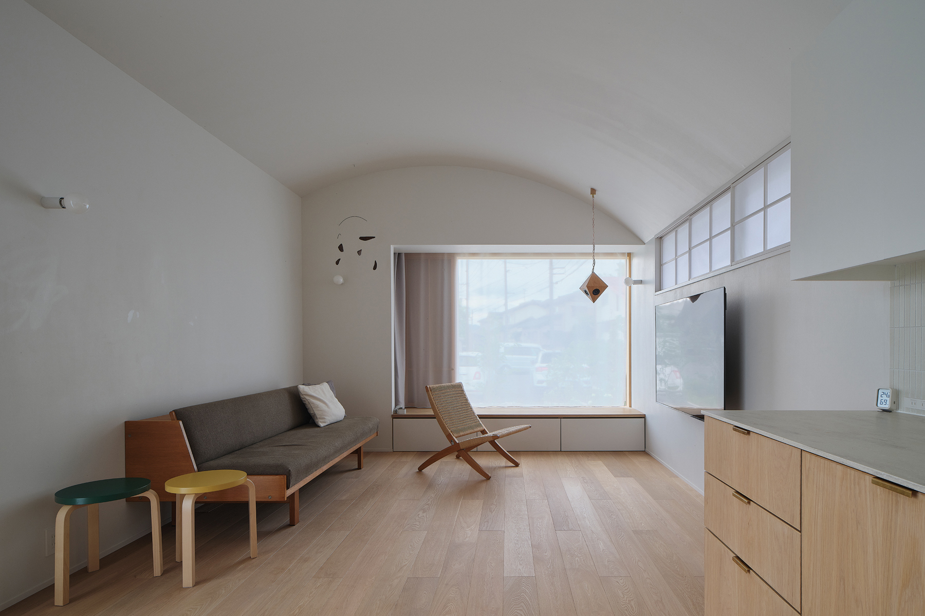 家族と寄り添い、シンプルで上質な暮らしをかなえた約24坪の平屋です。手作りの家具や自然素材に囲まれた室内は、小さくても心地よい上質感に満ちています。玄関から続く先に広がるメインルームは、柔らかな光に包まれたシンプルな空間。天井のアールや白壁が穏やかな気持ちを誘います。リビングで過ごす家族団らんの時間は癒やしに満ち、夜には明かりを落とした空間で夫婦水入らずのひとときを楽しめる、居心地の良い住まいです。