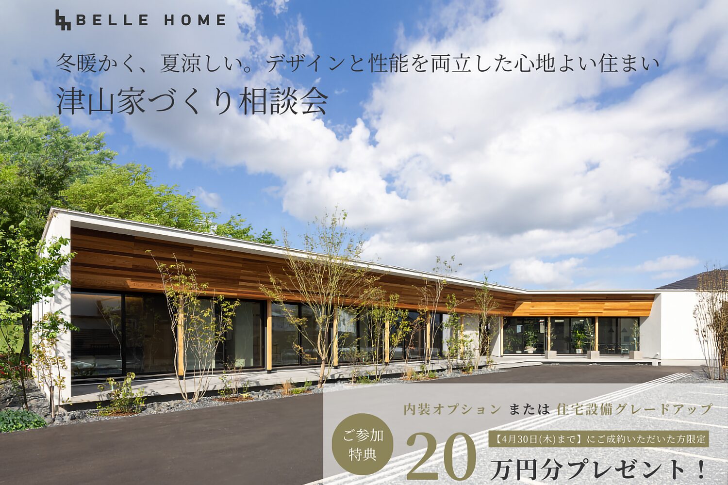 4月30日(木)までの成約で、内装オプションまたは設備グレードアップ20万円分プレゼント