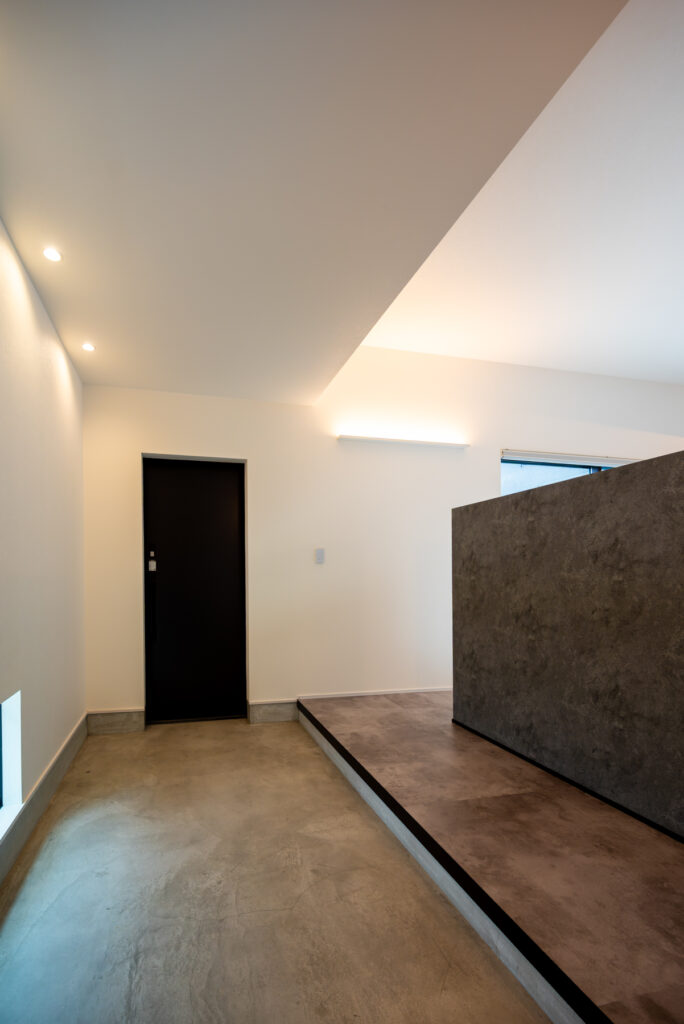 リビングとゆるやかにつながる約4帖の玄関土間は、観葉植物を置いたり、お子さまの遊び場として使ったりと、暮らしに合わせた楽しみ方が広がります。視線より低い位置に地窓を設けることで、外からの視線に配慮しながら、暗くなりがちな玄関に自然な明るさを取り入れています。