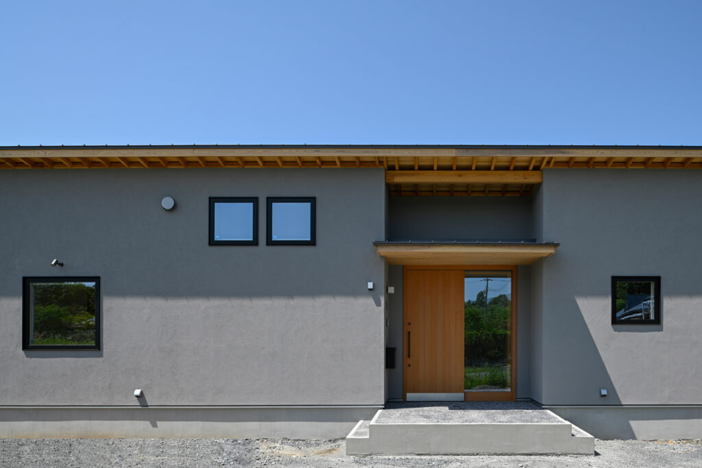 津山市の山裾に位置するSさん一家は、ご夫婦とお子さま3人の5人家族。自然に囲まれた環境で、子どもたちがのびのびと育つ場所を求めて、この地に住まいを構えました。山の稜線を背景に、建物が静かに佇む姿は、周囲の景色に溶け込むように計画されています。家族それぞれの時間を大切にしながら、ともに過ごす日々が、ここから紡がれていきます。