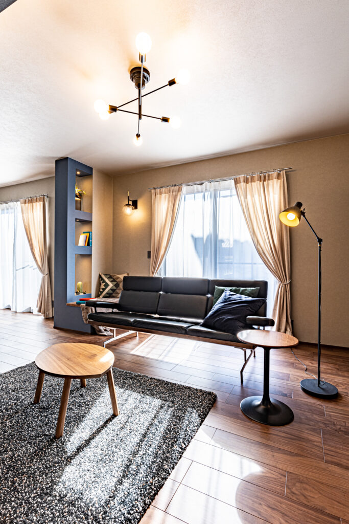 築30年の中古住宅を購入したご夫婦が描いたのは、落ち着きのある大人の時間が流れる住まいでした。元々ある濃い色合いを受け継ぎながら、どこか外国のホテルを思わせる洗練された雰囲気を重ねていきます。天井の高さを最大限に生かして、ふたりの暮らしにふさわしい空間が生まれました。