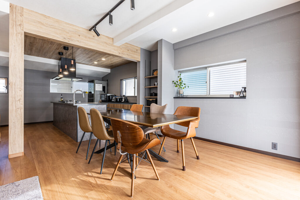 マイホーム購入にあたり、「中古住宅×リノベーション」という道を選んだIさんご家族。築49年の住まいを、間取りから大胆に変更することで、理想の暮らしへと生まれ変わらせました。お友達を招いてホームパーティーを楽しむことが大好きなご家族にとって、広々としたLDKは何よりも大切な要素。大きなダイニングテーブルを置いてもゆとりがあり、配膳もしやすい空間が実現しました。