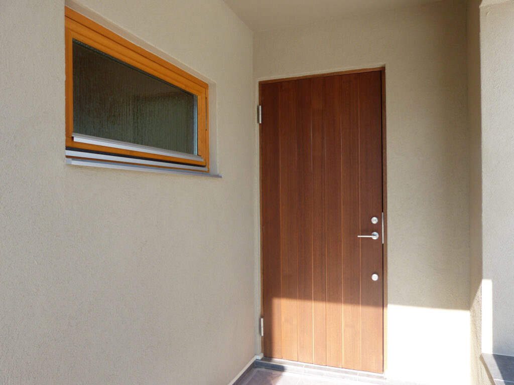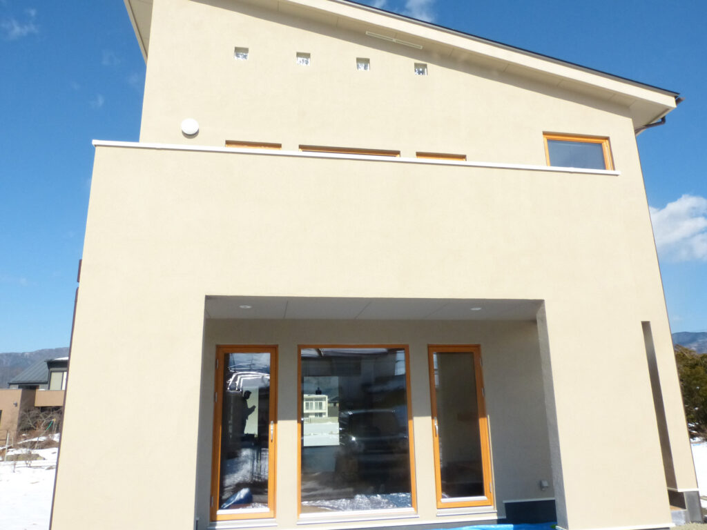 外断熱二重通気工法と木製トリプルガラスの採用により、結露や温度差を抑えた室内環境を実現しています。24時間新鮮な空気が循環し、冬は暖かく夏は爽やかに過ごせます。塗り壁の質感と木製サッシが織りなす外観は、あたたかみのある佇まいに。丁寧な施工技術が、長く快適に住み続けられる性能を支えています。