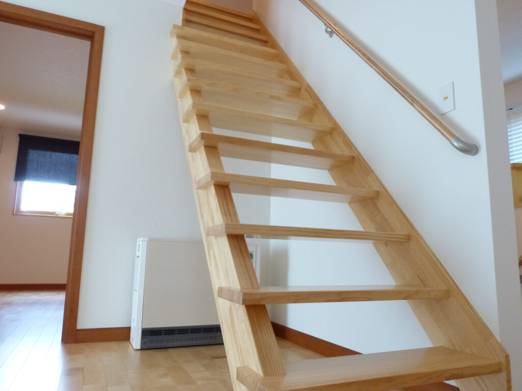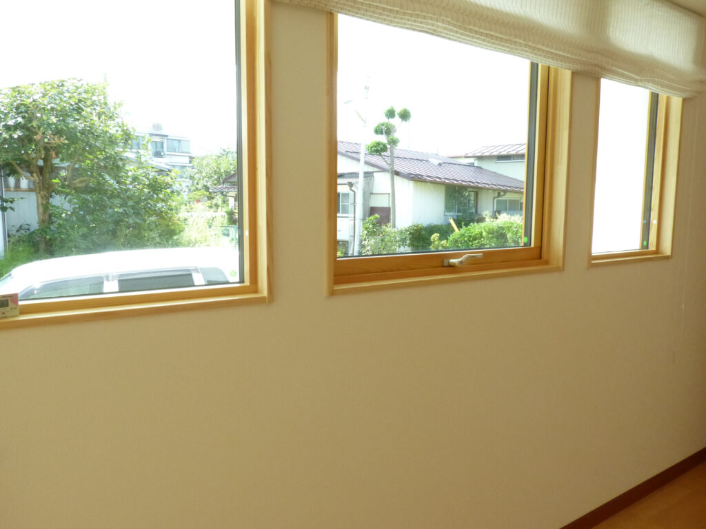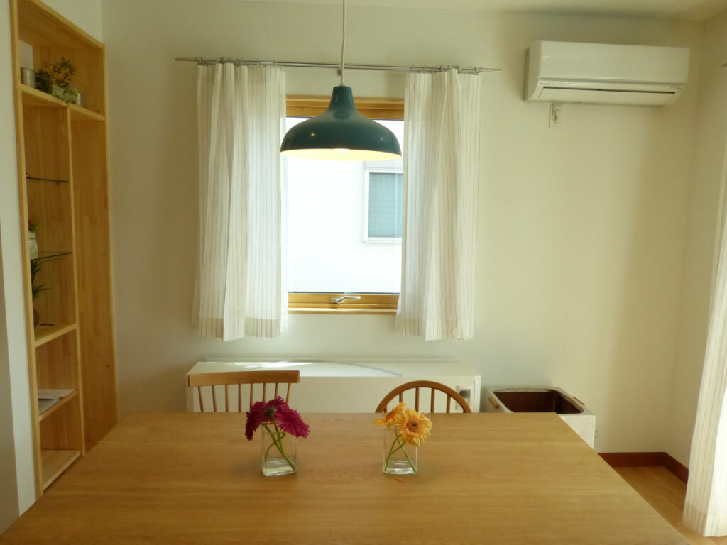 木製サッシの連窓から自然光がたっぷりと注ぎ込み、室内を明るく照らします。スケルトン階段は視線を遮らず、空間に広がりをもたらす工夫です。小屋裏には勾配天井を生かした収納スペースを設け、限られた面積を有効活用。家族が自然に集まるLDKを中心に、暮らしやすい動線を丁寧に計画しました。