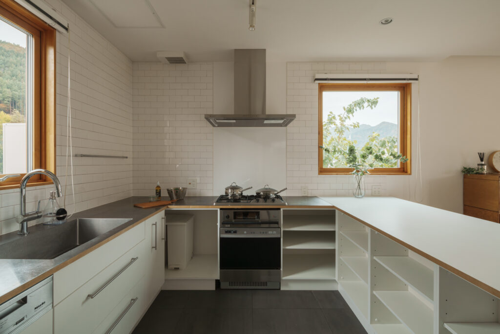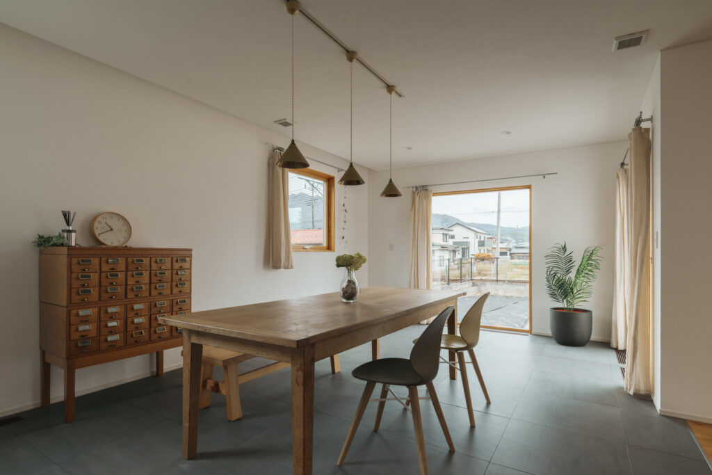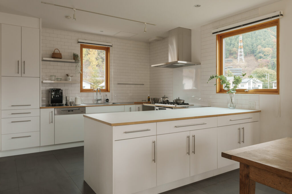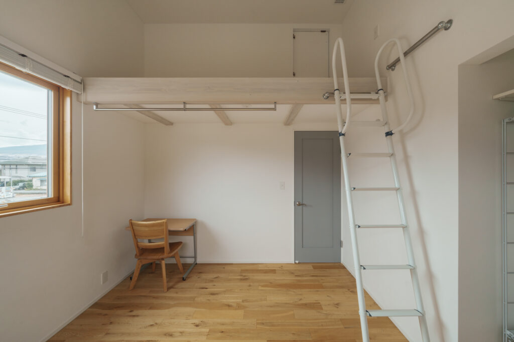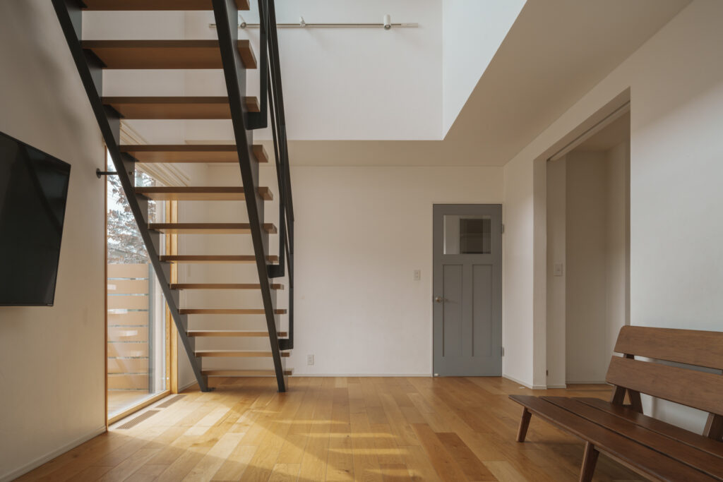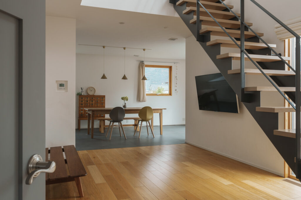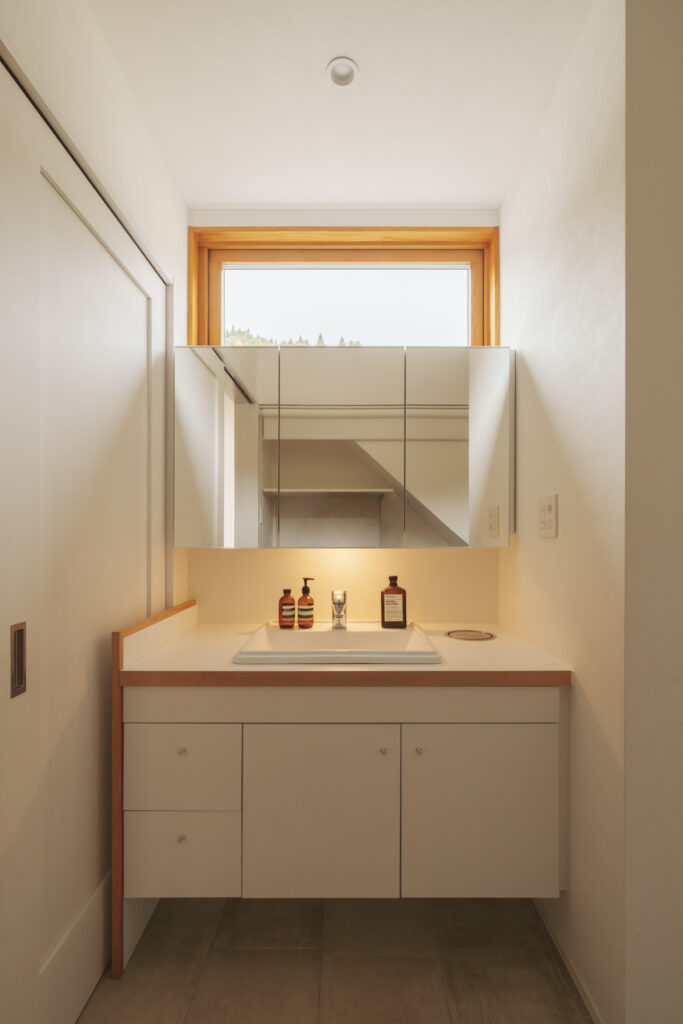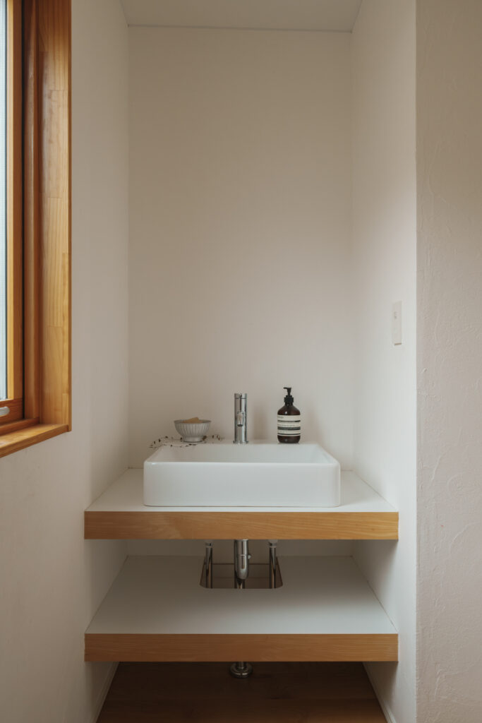 性能だけでは心を満たせないという哲学のもと、外観デザインから家具・照明に至るまで、住まい手の感性を丁寧にくみ取りながらプランニング。洗面台はパーツを厳選したオーダーメード。大工による造作の箱階段がロフトへと誘います。白い塗り壁に木製サッシがアクセントを添え、配色やディテールにまでこだわり抜いた、唯一無二の住空間を創出しています。