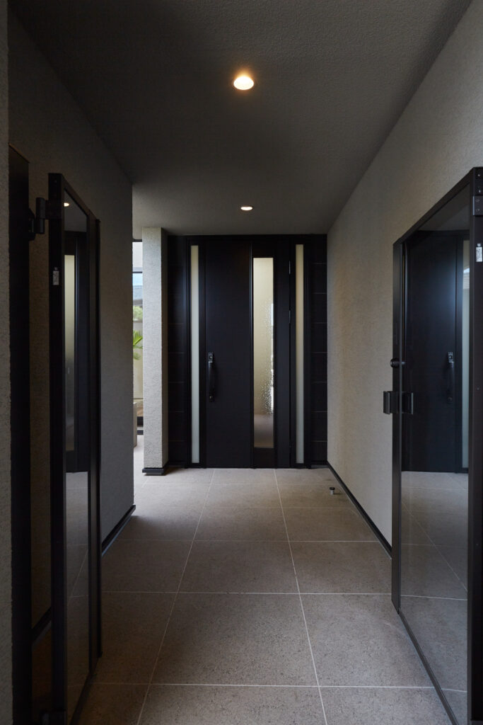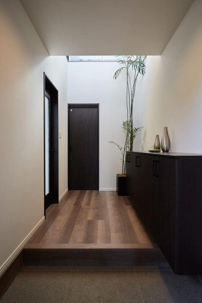 吹き抜けの玄関が、開放感と明るさでゲストを歓迎します。