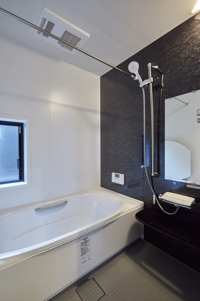 玄関には吹き抜けを設け、訪れる人を迎える明るくダイナミックな演出を施しています。天井が高く開放的な空間が、住まい全体の広さと心地よさを際立たせます。重厚な外観とのギャップも楽しめる設計です。