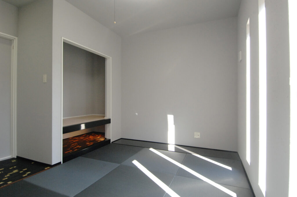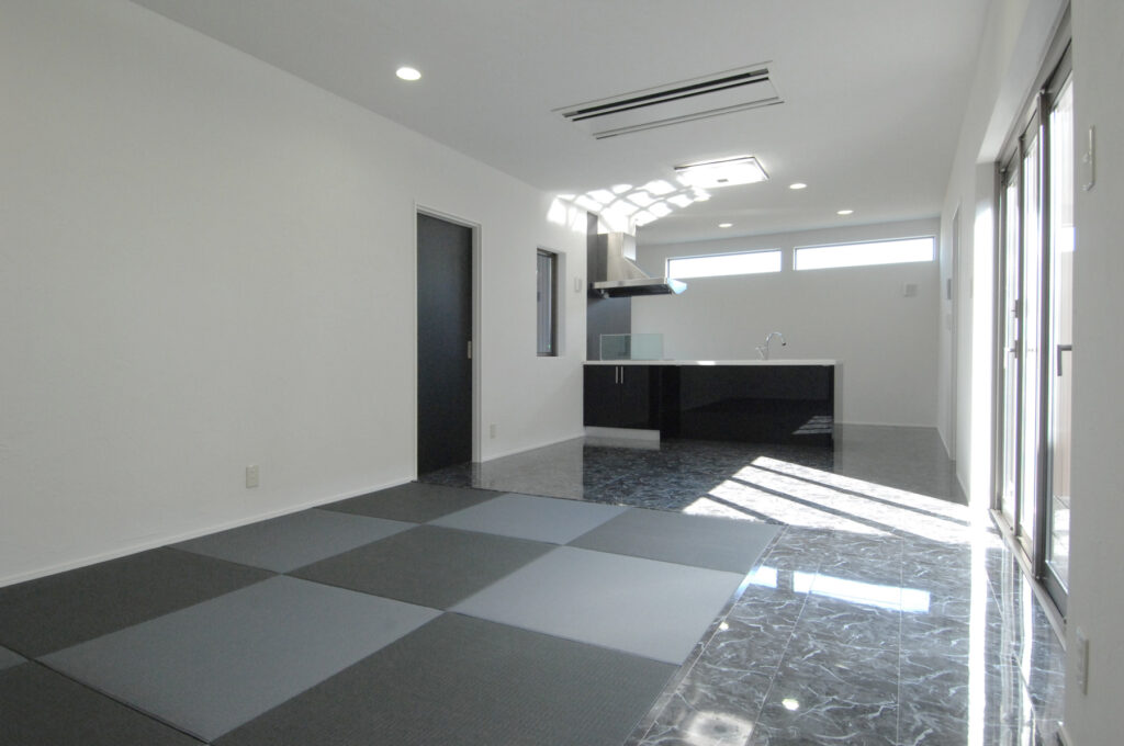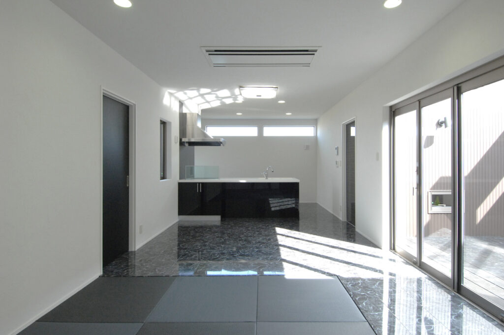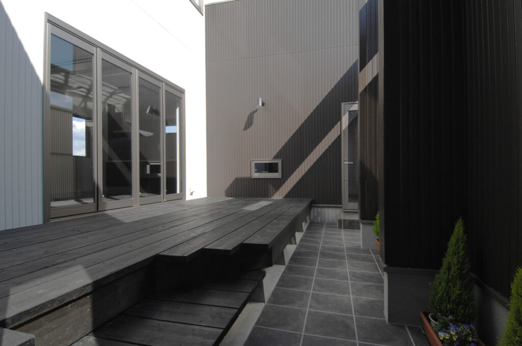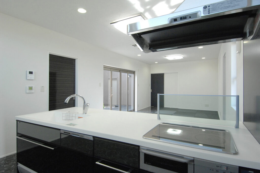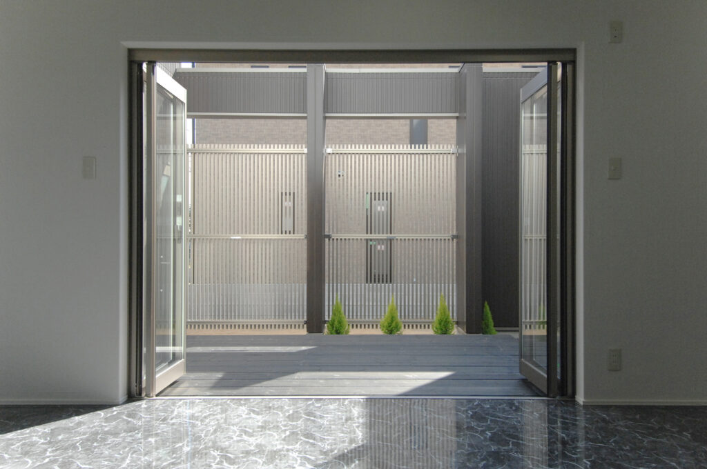 リビングに隣接する中庭は、もうひとつの居場所です。屋外で遊ぶ子どもたちを、キッチンから見守ることができます。室内と外の境界が曖昧になり、視線が自然と抜けていく心地よさ。モダンなデザインで統一された空間は、飽きることなく長く愛せる佇まいです。ゲストを迎える際にも、印象的な場所として記憶に残ります。