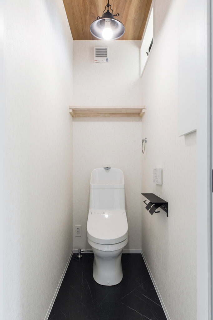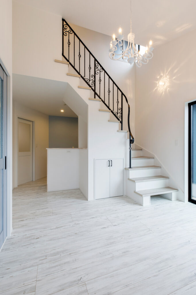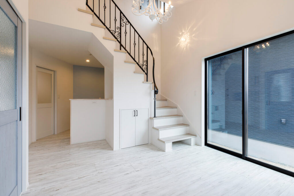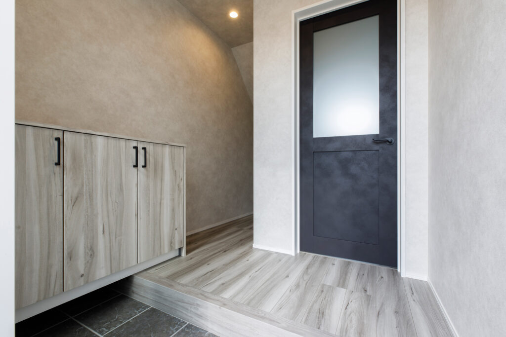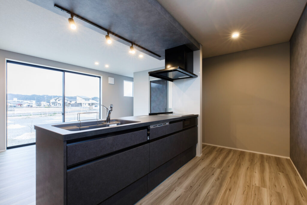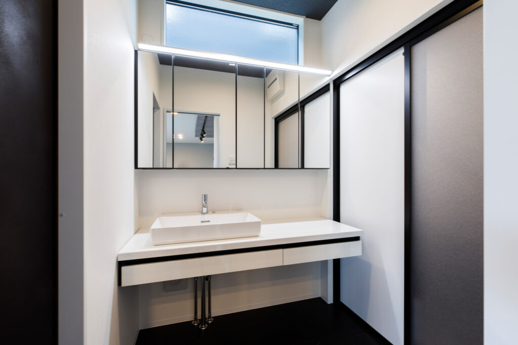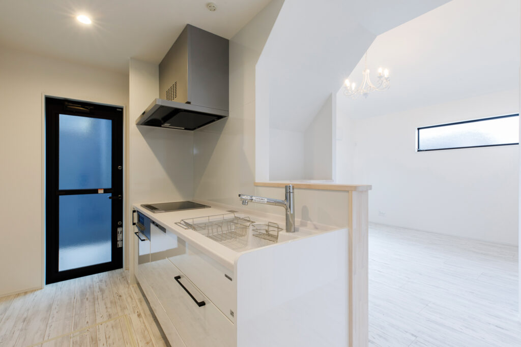 親世帯と子世帯、ふたつの世帯がひとつ屋根の下で暮らすNさん邸。子世帯は黒とグレーを基調としたシックな色調で、親世帯は白を中心とした明るく柔らかな印象でまとめました。それぞれの好みや価値観を大切にしながら、互いの生活を尊重し合える設計です。対象的でありながら調和する住まいとなりました。