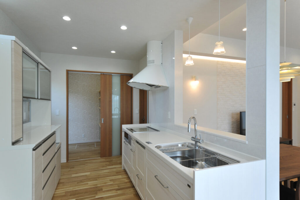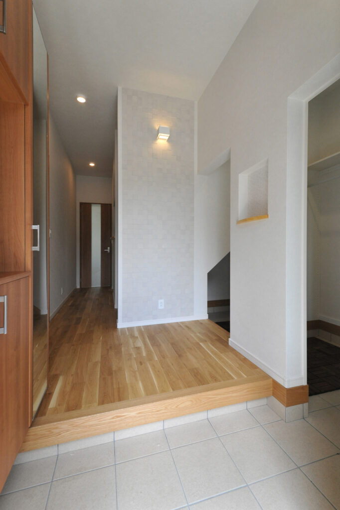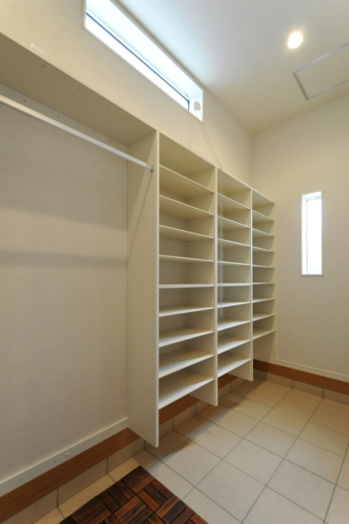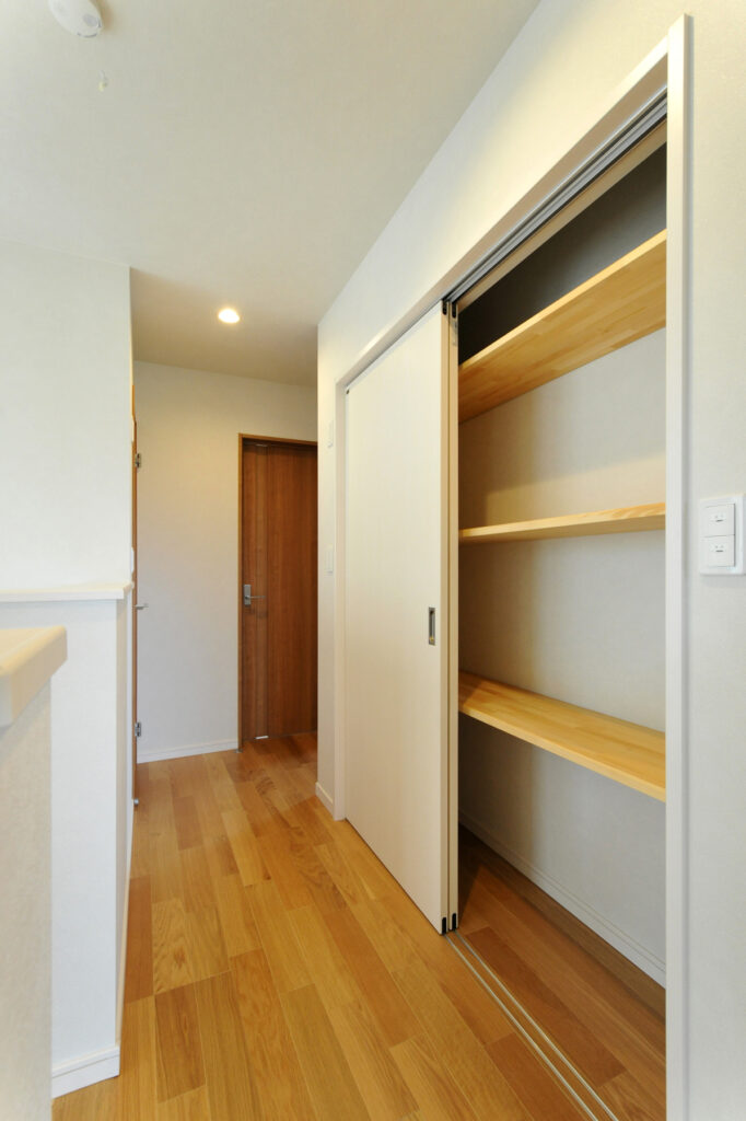 玄関を開けると、靴や外出用品がすっきりと納まる場所が用意されています。帰宅後の片付けが自然と習慣になり、いつも整った状態を保てます。買い物から戻ったときも、荷物を運び入れる経路が短く、負担を感じません。日常の小さなストレスを減らす設計が、毎日の暮らしを軽やかにしてくれます。