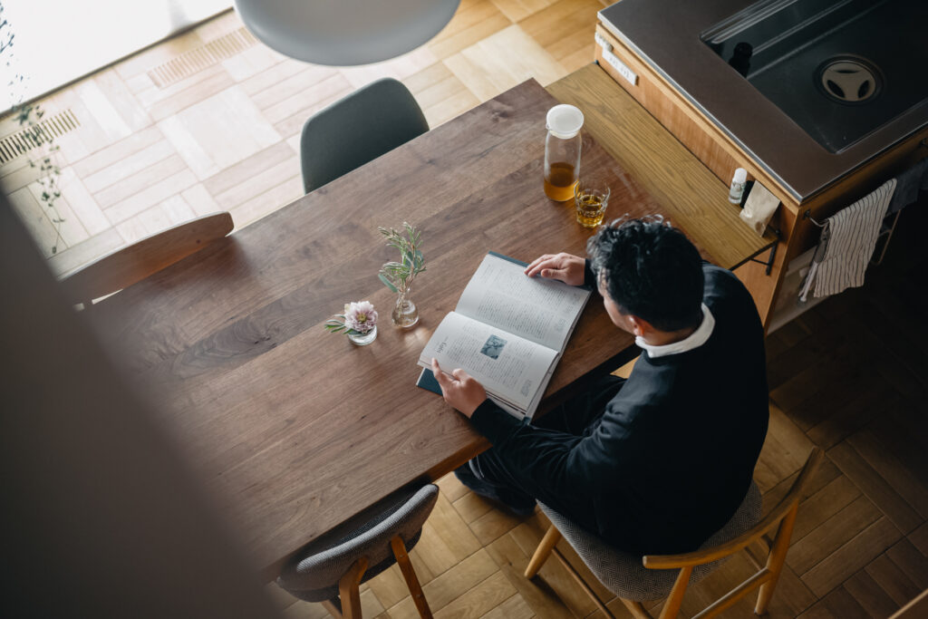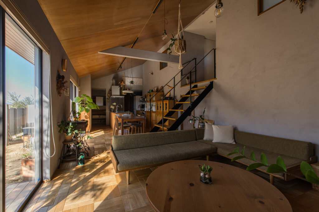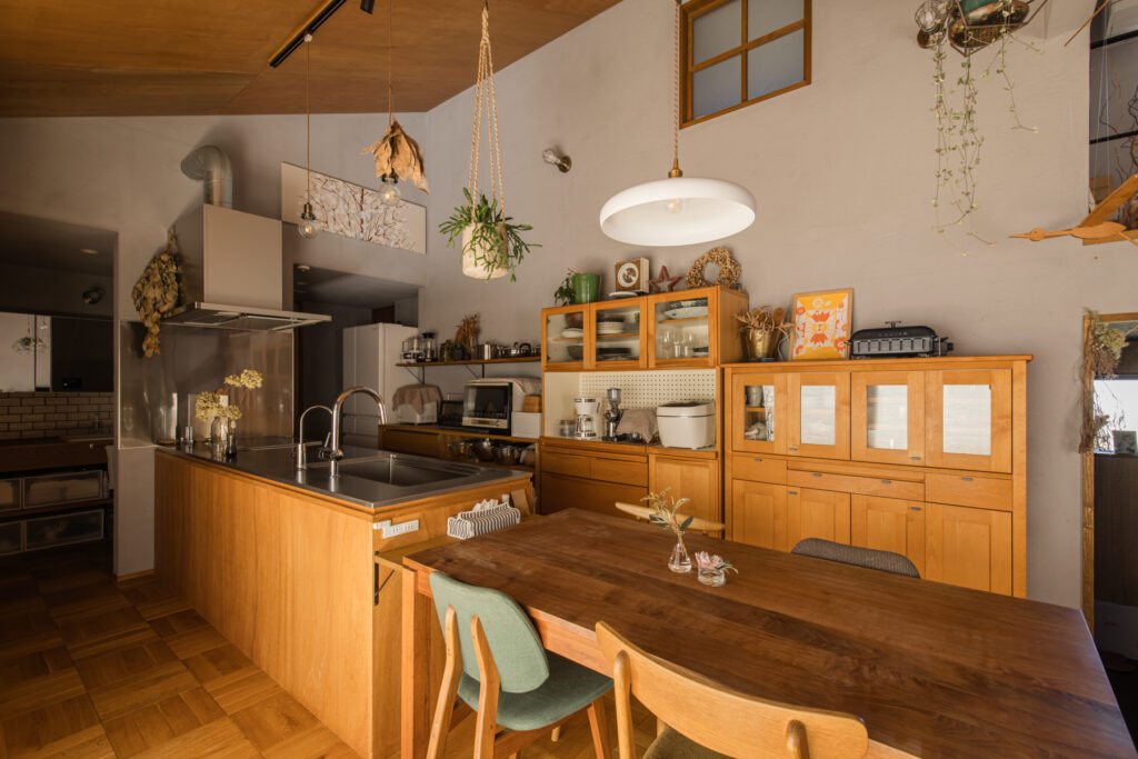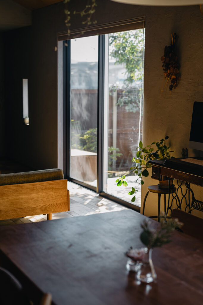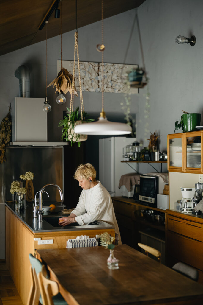 室内の至る所にあしらわれたグリーンが、立体感のあるディスプレイとして空間にみずみずしさをもたらします。一鉢一鉢に手をかけるたび、植物は生き生きと成長し、四季の移ろいを室内で感じられる楽しみが生まれます。自然素材の質感と植物の調和が、日々の暮らしに静かな喜びをもたらしています。