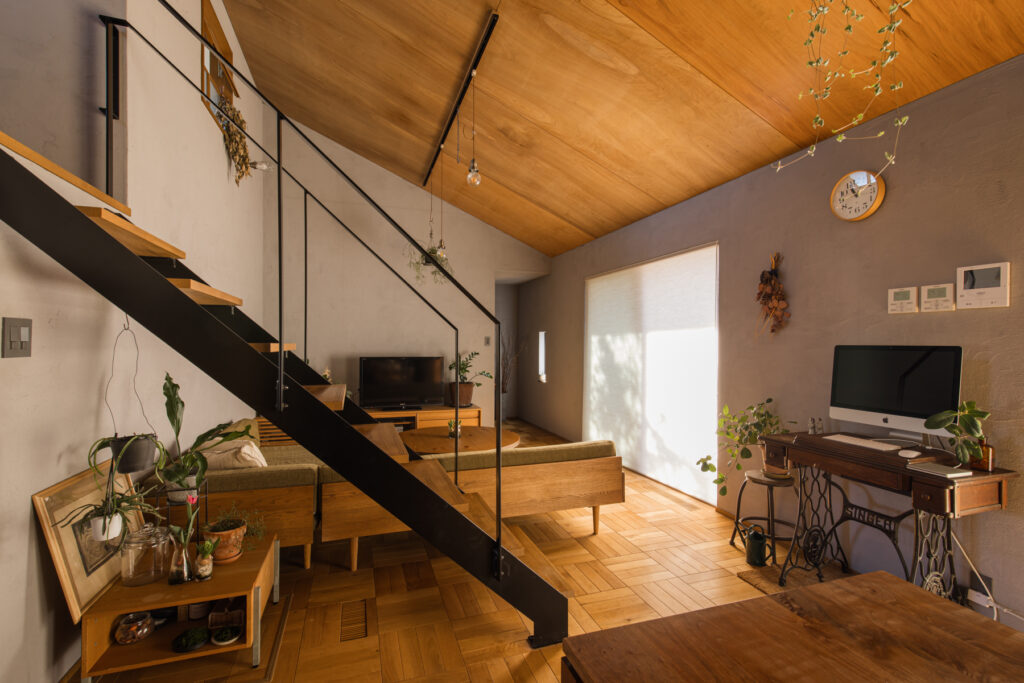 「緑と暮らす」をコンセプトに、天然木のぬくもりを随所に感じられる住まいを実現したIさんご家族。中二階の構造が家族の気配を近くに感じさせ、お互いの存在を自然に意識できる空間です。アンティーク品を交えた家具類が、懐かしさと心地よさを演出し、時を経るごとに深まる色艶が、住まいへの愛着を育んでいきます。