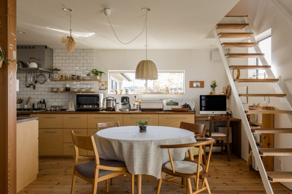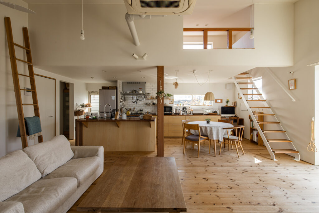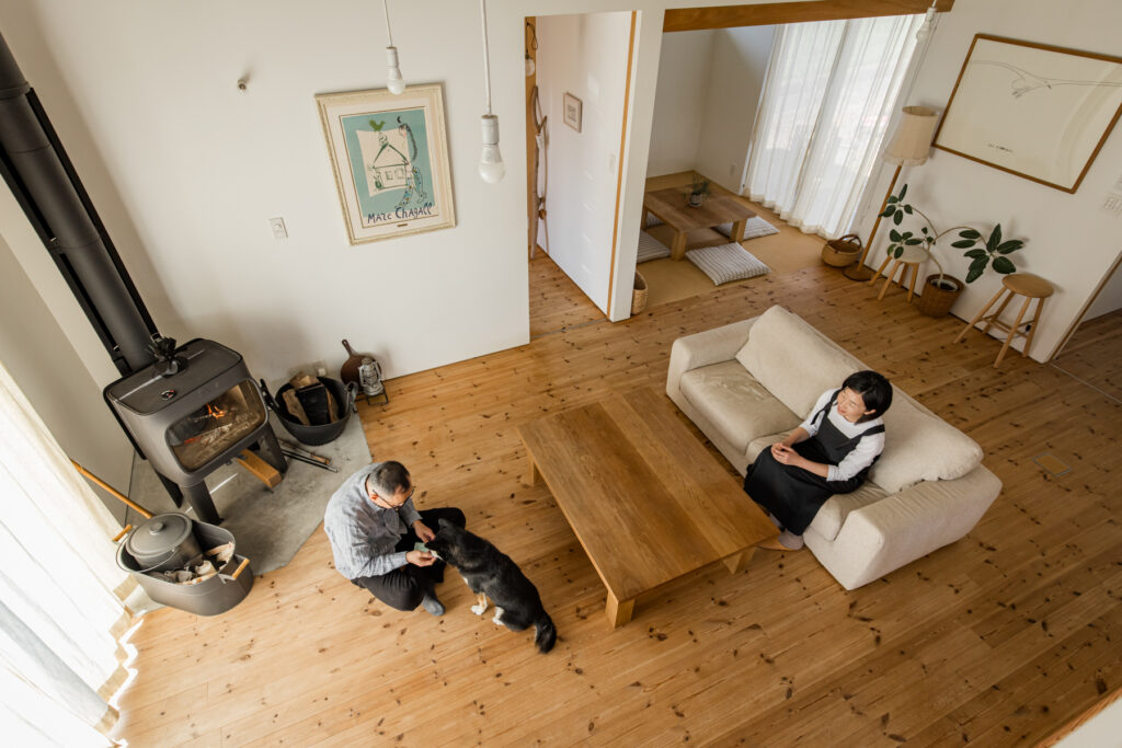 建築家・中村好文氏の思想に影響を受けた「井坂工務店」の代表が、自らの住まいとして建てた住まい。「火を楽しむ暮らし」をコンセプトに、薪ストーブを中心に据えたLDK周りの設計は、合理性とぬくもりが静かに同居しています。住み込むほどに愛着が増す、同社の家づくりの原点がここにあります。
