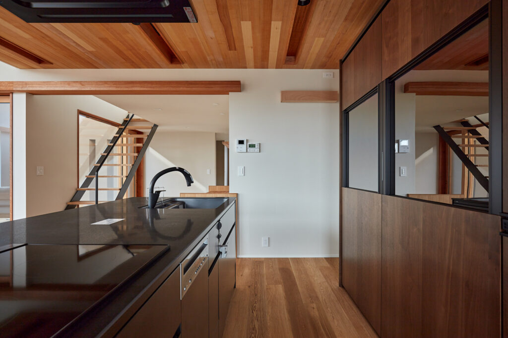 自然素材 和モダン タイル モダン JAPANDI 無垢材 ナチュラル ガルバリウム鋼板 塗り壁 壁紙 余白 陰影 造作家具 真ちゅう アイアン ハイドア 木製サッシ 建具 ガラス スケルトン階段 家事が楽 開放感 ランドリールーム 耐震 ワークスペース 高性能 子育て世代 大屋根 共働き 照明計画 デッキ 収納 土間 2階建て 中庭 ヌック 3LDK 吹き抜け ファミリークローゼット カウンターキッチン I型キッチン 建築家