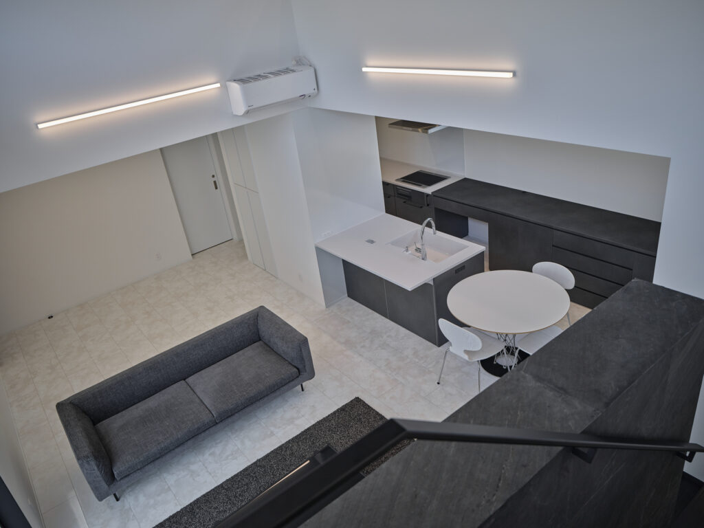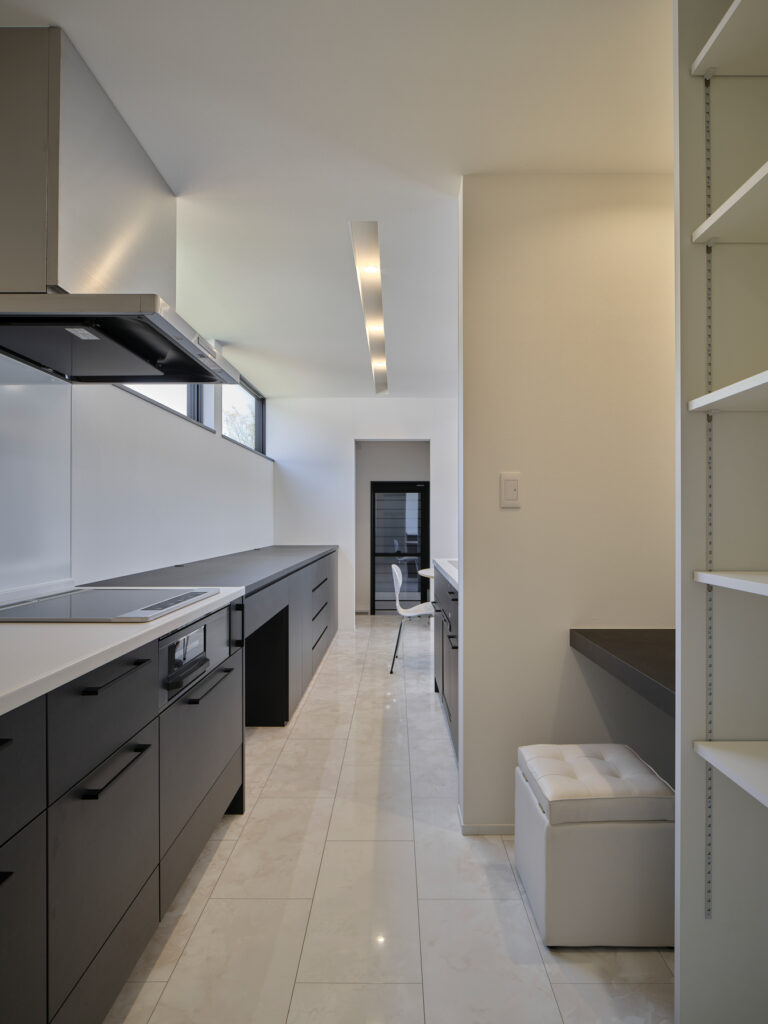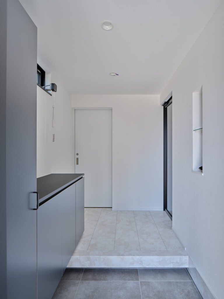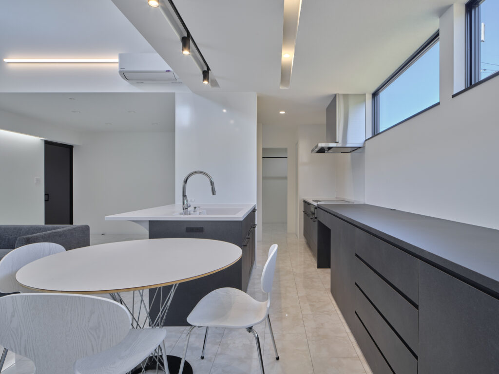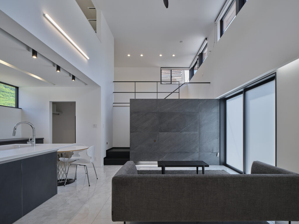 一人暮らしの住まいを建てた施主は、以前「掛谷建設」で家を建てた方のお兄さま。実家を建て替える形で家づくりをスタートし、ガレージハウスにホテルライクな雰囲気を希望されました。完成した住まいは、モノトーンを基調としたすっきりと洗練された空間で、まさに「暮らせるホテル」といえる仕上がりとなりました。