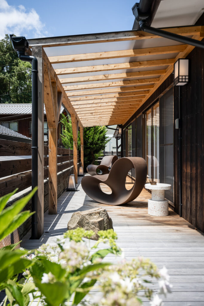 障子戸から柔らかな光が満ちる広縁、大きな沓脱石がアクセントの玄関。日本の伝統的な和とフランス人の感性が融合した空間は、海外からのゲストが絶えない人気宿となりました。国境を超えた感性が、直島の風景に新たな息吹を吹き込んでいます。アートの島として知られる直島で、この宿もまたひとつの作品として、訪れる人々に特別な体験を届けています。