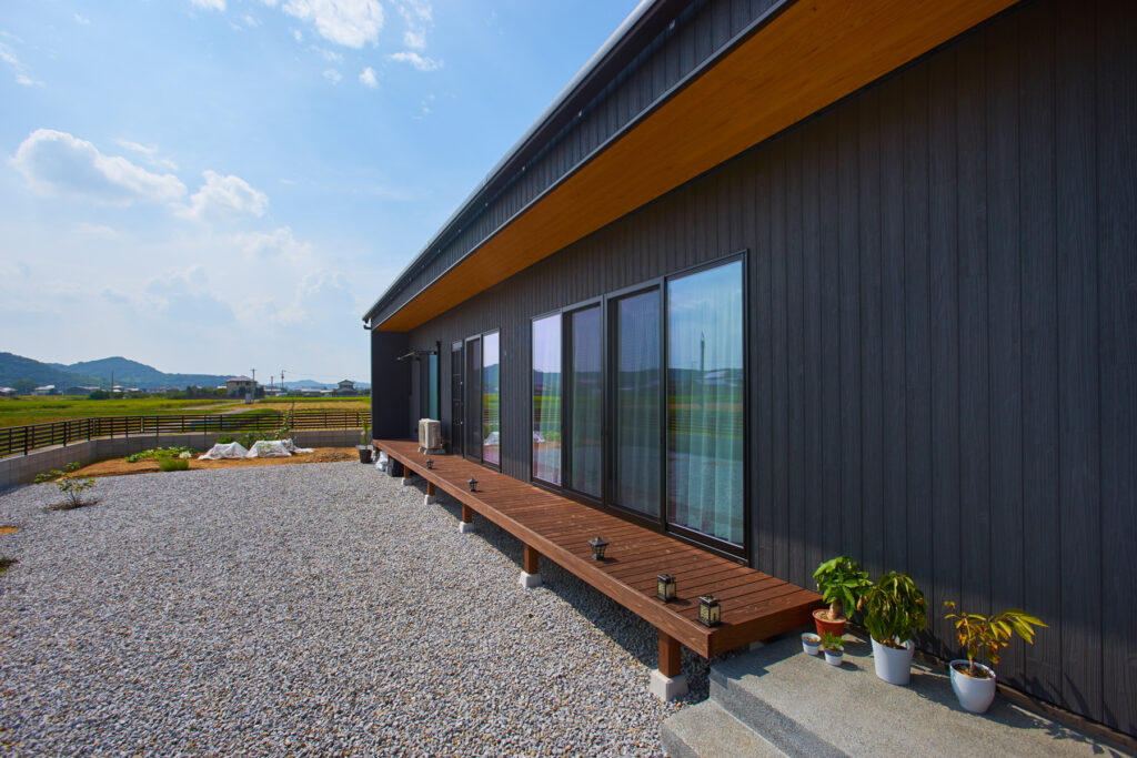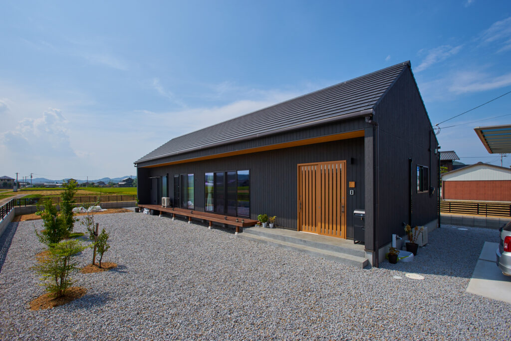隣家と接しない、伸びやかな場所で暮らしたい——。そんな願いを胸に、Uさんご夫婦はさぬき市郊外の田園地帯へと目を向けました。設計と施工を担ったのは、ご夫婦それぞれが旧知の間柄だった「黒石建設」。偶然の再会が縁となり、ふたりが幼少期に親しんだ民家の記憶を手がかりに、個性あふれる平屋づくりがはじまりました。