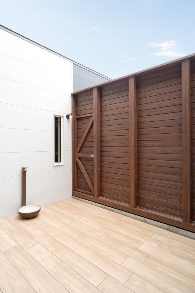 奥さまの希望で、LDKからは和室と中庭を一望できるよう間取りを整えました。和室はお子さまの遊び場にもゲストルームにもなる多目的な空間で、家族の暮らしに柔軟に応えます。プライベートな中庭ではバーベキューを楽しむこともでき、外と内が自然につながる豊かな時間が生まれています。土間や木の質感が随所に息づく室内は、落ち着きと遊び心を兼ね備えています。