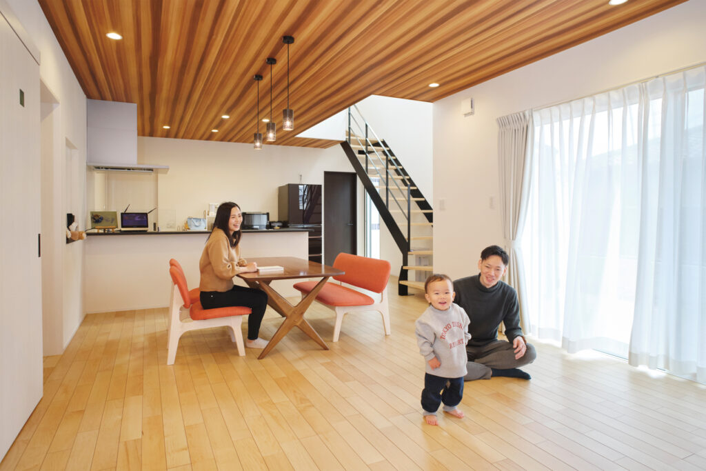 結婚を機にいつかはマイホームをと考えていたEさんご夫婦。アパート暮らしのなかで、子どもが生まれたときに周囲へ気を使わず伸び伸びと育てられる環境を求め、家づくりへの一歩を踏み出しました。複数の工務店の提案を丁寧に比較しながら、ご夫婦それぞれの要望をしっかりと受け止めてくれる「黒石建設」との出会いが、理想の住まいをカタチにする大きな転機となりました。