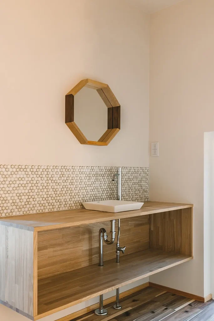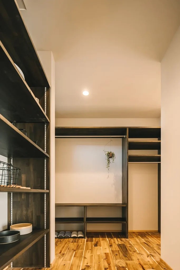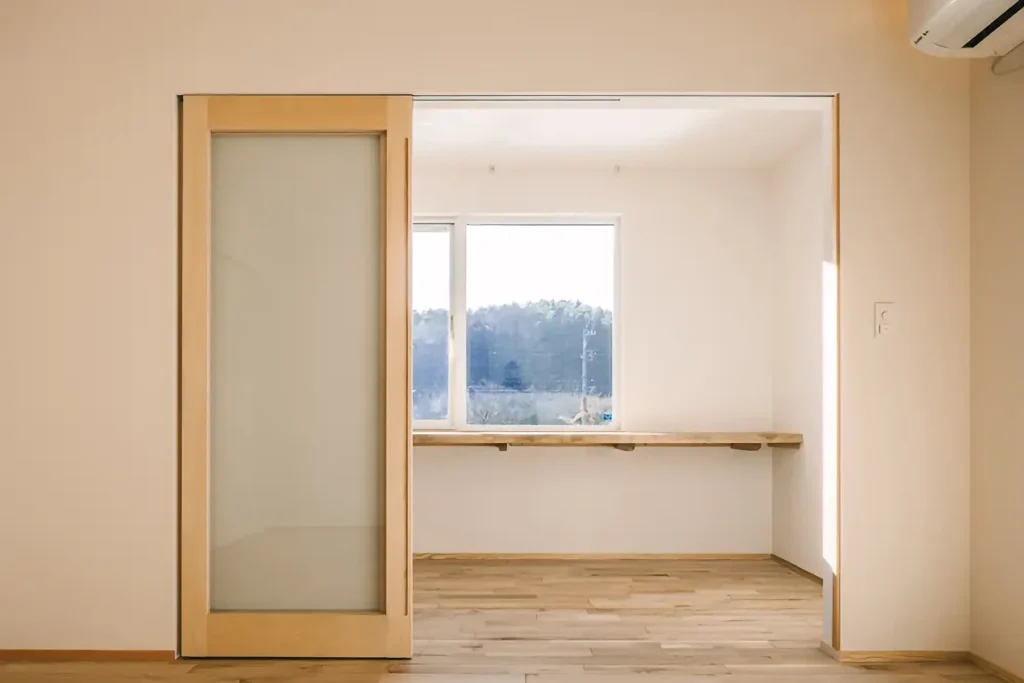全てのドアを造作で設えるなど、細部にまでこだわった質の高い住まいです。2階の家事室からも美しい借景が望めるので、日々の家事も心地よく進められます。暮らしやすさだけでなく、デザイン性も両立しました。
