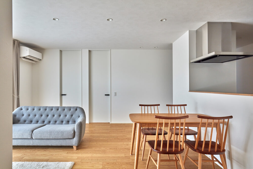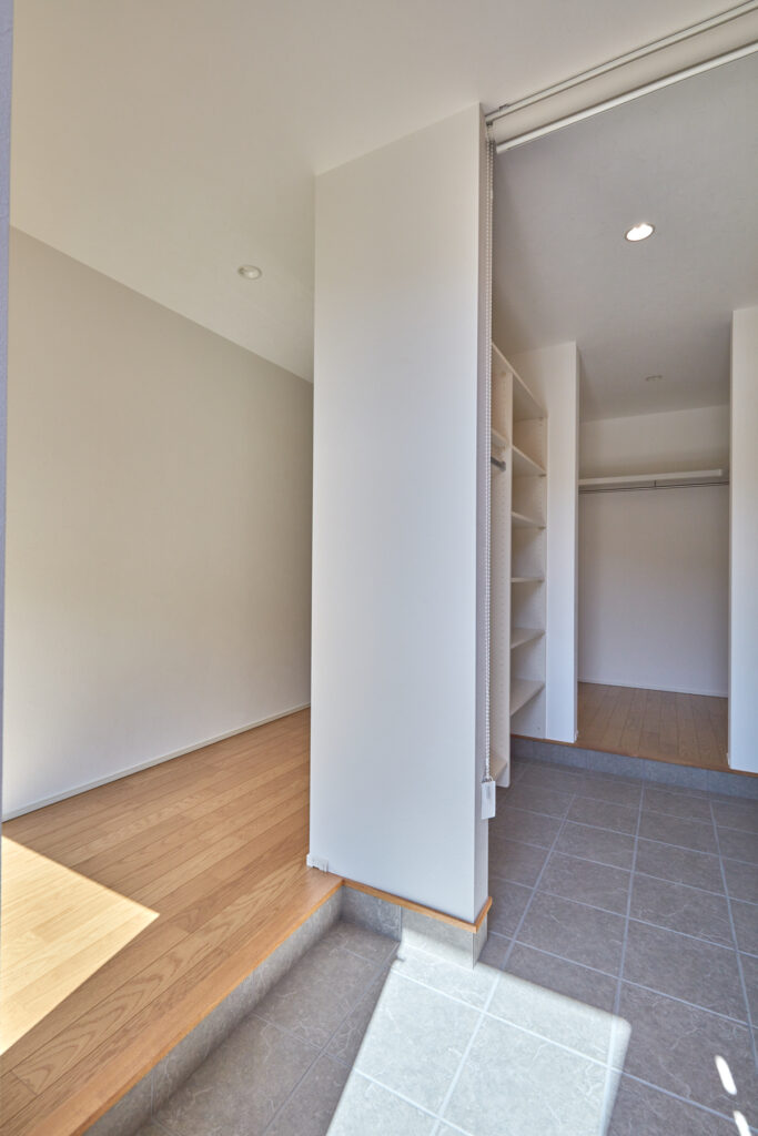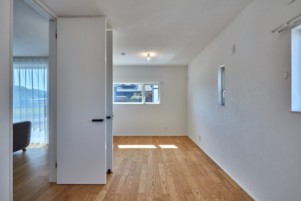 仕事と家事・育児を無理なく両立し、夫婦ふたりの将来も快適に過ごせる住まいを目指しました。子ども室は将来2室に区切れる設計で、家族の成長に合わせて柔軟に対応できます。無邪気に戯れる幼い姿にわが子の未来を重ねながら、新たな日常が静かに紡がれていきます。