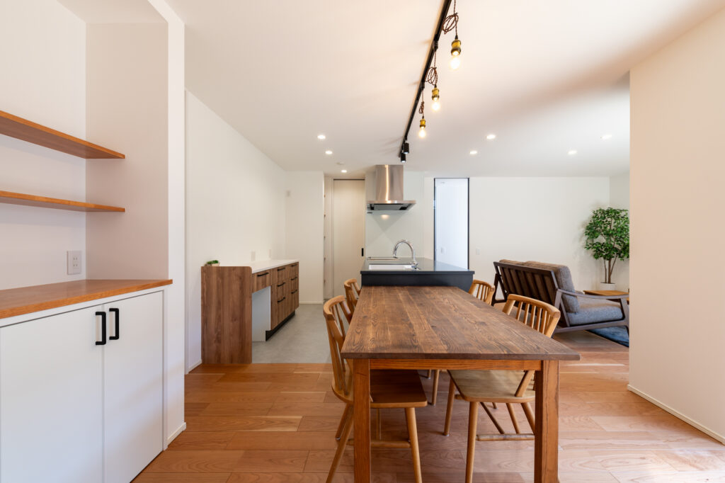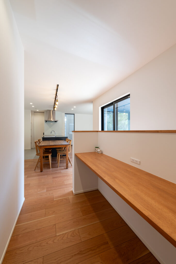 ダイニング横にスタディースペースを配置し、家族の気配を感じながら作業できます。