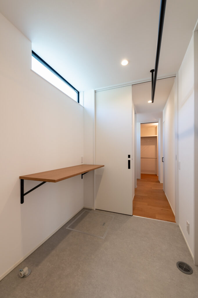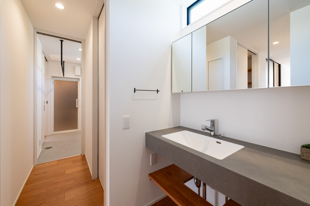 玄関からクローゼット、洗面室、浴室へ直行できる動線設計。