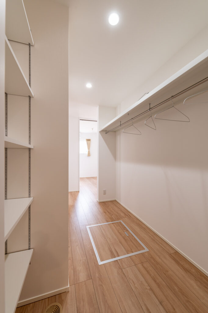 ウォークインクローゼットはぐるりと回れる間取りに。