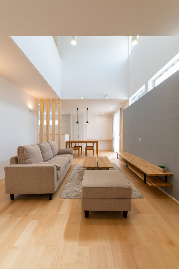 吹き抜けのリビングは、高い性能があればこそ実現できる快適な大空間です。
