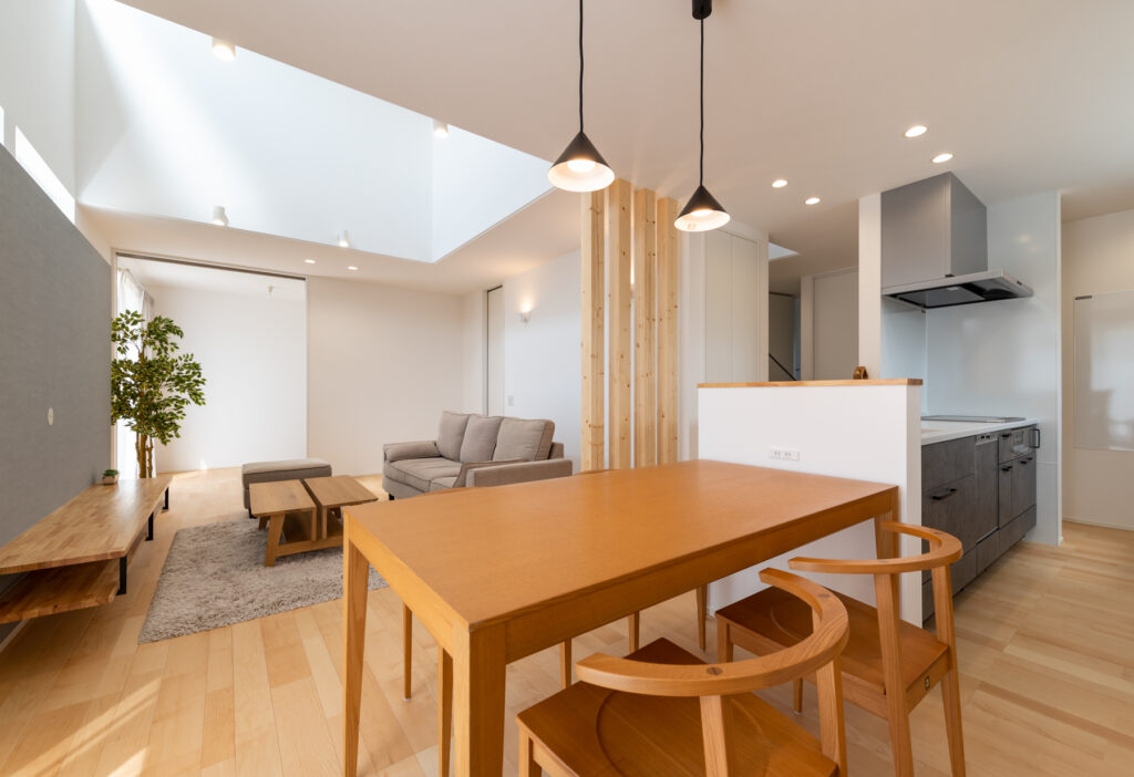シンプル 自然素材 無垢材 ナチュラル 造作家具 高気密・高断熱 家事が楽 開放感 省エネ 子育て世代 収納 土間 2階建て 吹き抜け I型キッチン