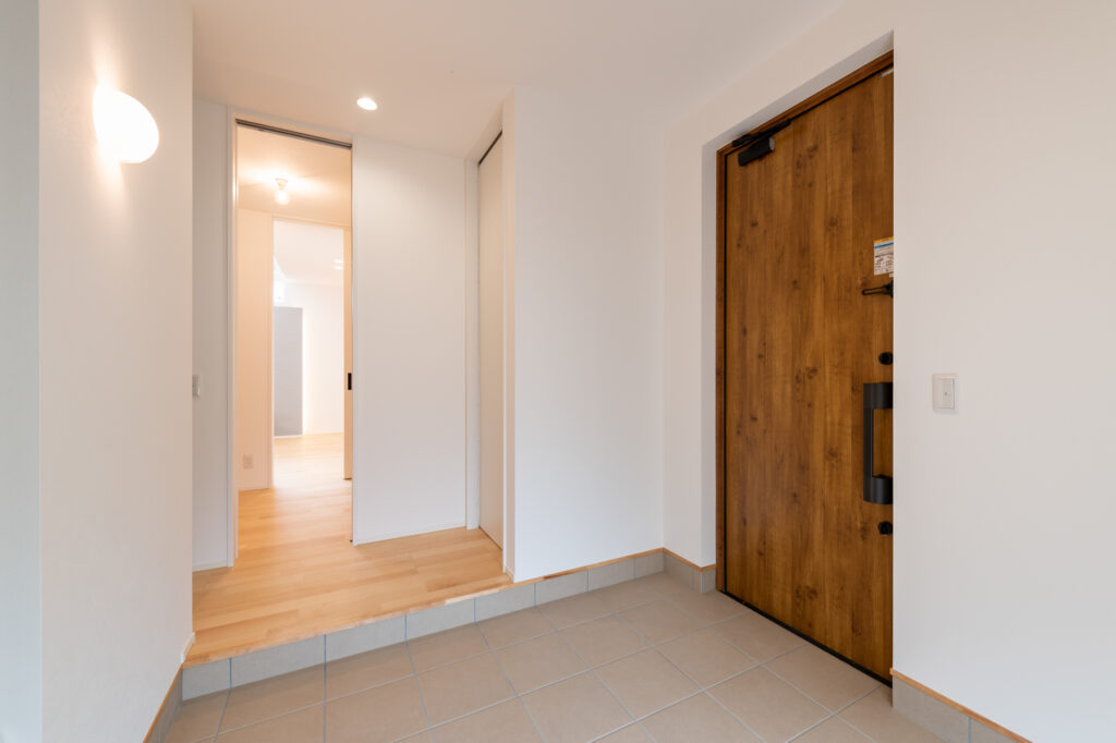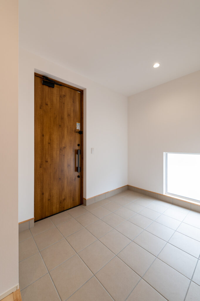 玄関を開けると、アクティブなご夫婦の趣味である自転車をそのまま収められる、ゆったりとした空間が迎えてくれます。広い玄関スペースは、帰宅時の荷物の置き場所にも困らず、日々の出入りにゆとりを生み出します。夫婦で並んで料理を楽しめる広さのキッチンも、暮らしに豊かさを添えています。
