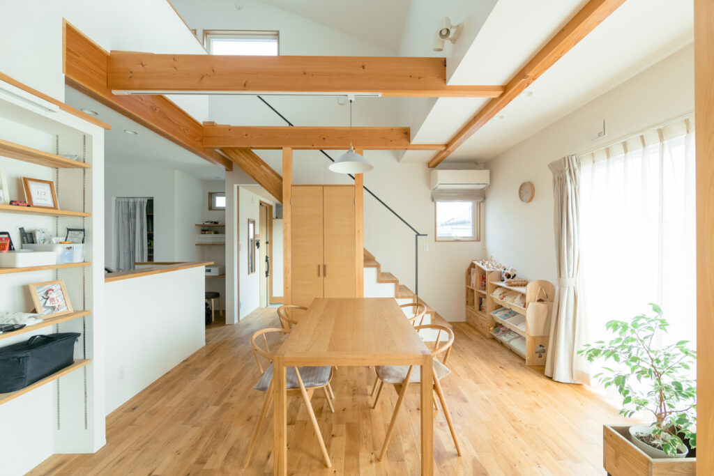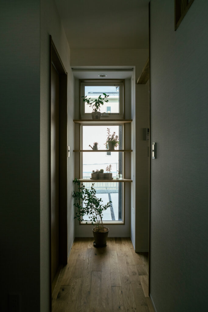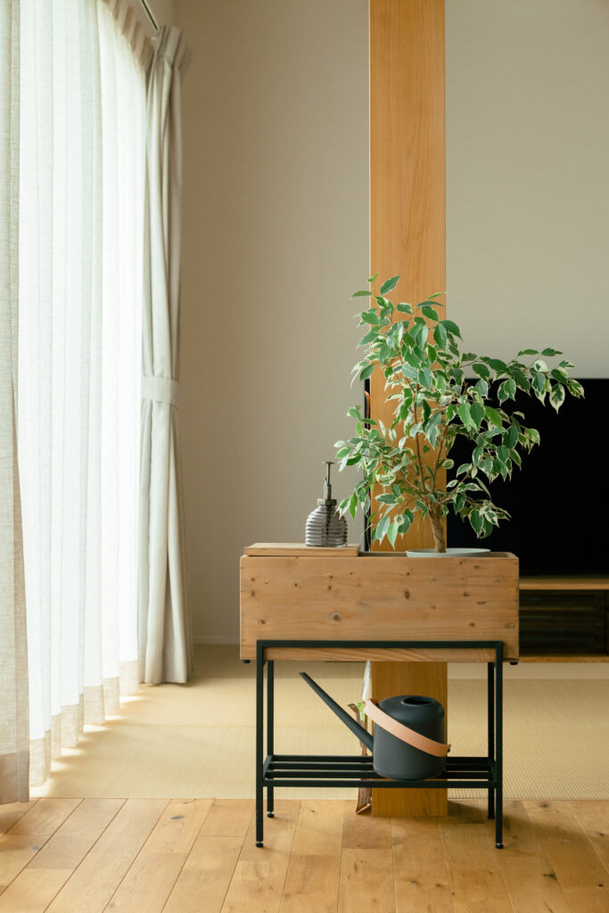 奥さまが大切に育てる植物は、季節ごとに表情を変えながら住まいに彩りを添えます。窓辺に置かれた鉢植えは、朝の光を浴びて生き生きとした姿を見せてくれます。室内に差し込む自然光は、時間とともに角度を変え、一日の流れを穏やかに教えてくれます。家族が集まるひとときも、ひとりで静かに過ごす時間も優しく受け止めてくれます。