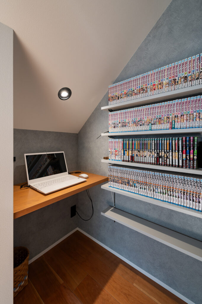 階段下のデッドスペースを活用した書斎は、集中できるご主人専用の空間を実現しました。