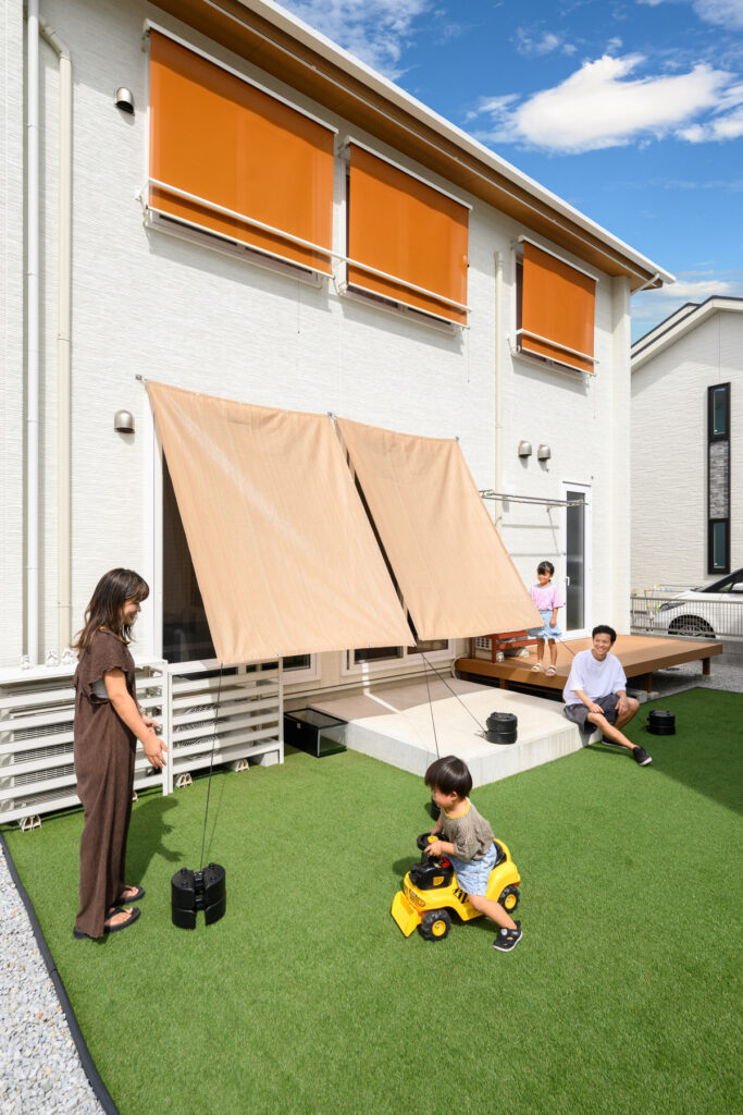 ここは同世代の親子世帯が多い分譲地。近隣との交流が日常的に行われています。庭でプール遊びをしたり、リビングで食事を共にしたり、時にはパジャマとタオル持参でお風呂に入って帰ったり。確かな性能と使いやすさがあるからこそ、いつでも人を迎えられるゆとりが生まれます。心地よい暮らしの中で自然と笑顔がこぼれ、かけがえのない家族や友人との強い絆を日々育んでいます。