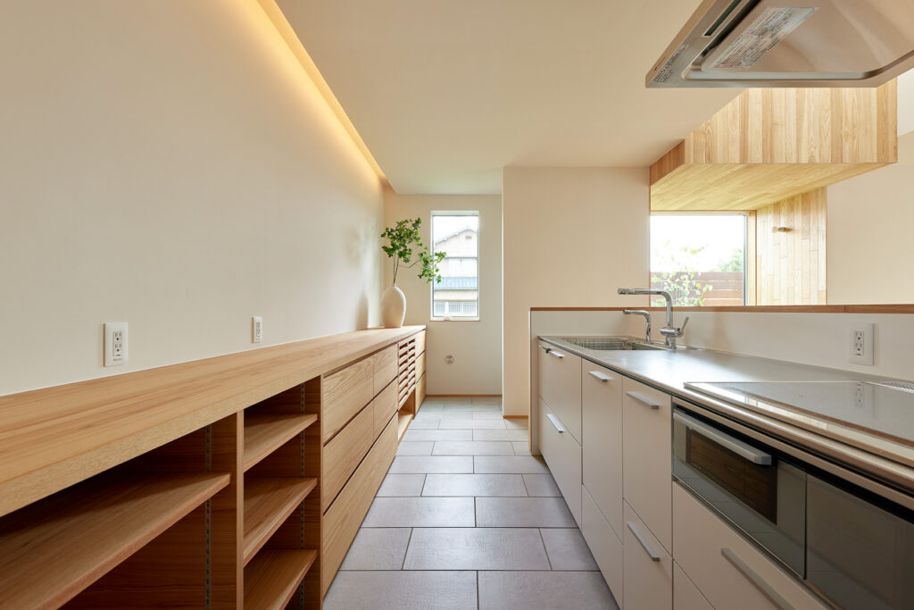 家族それぞれが思い思いに過ごせる小さな居場所、ヌック。読書をしたり、お茶を飲んだり、窓の外を眺めたり。リビングにいながらも、ほんの少し離れた特別な場所が、家族の時間に彩りを添えます。子どもたちの遊び場にもなり、大人の休息の場にもなる。そんな多様な使い方ができる空間が、毎日を特別なものに変えていきます。