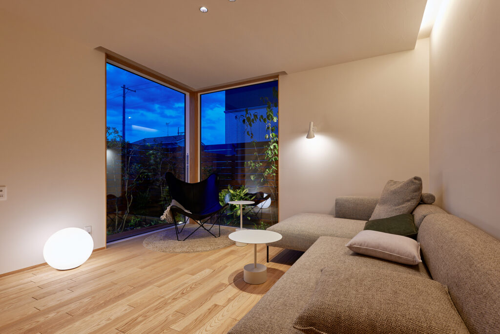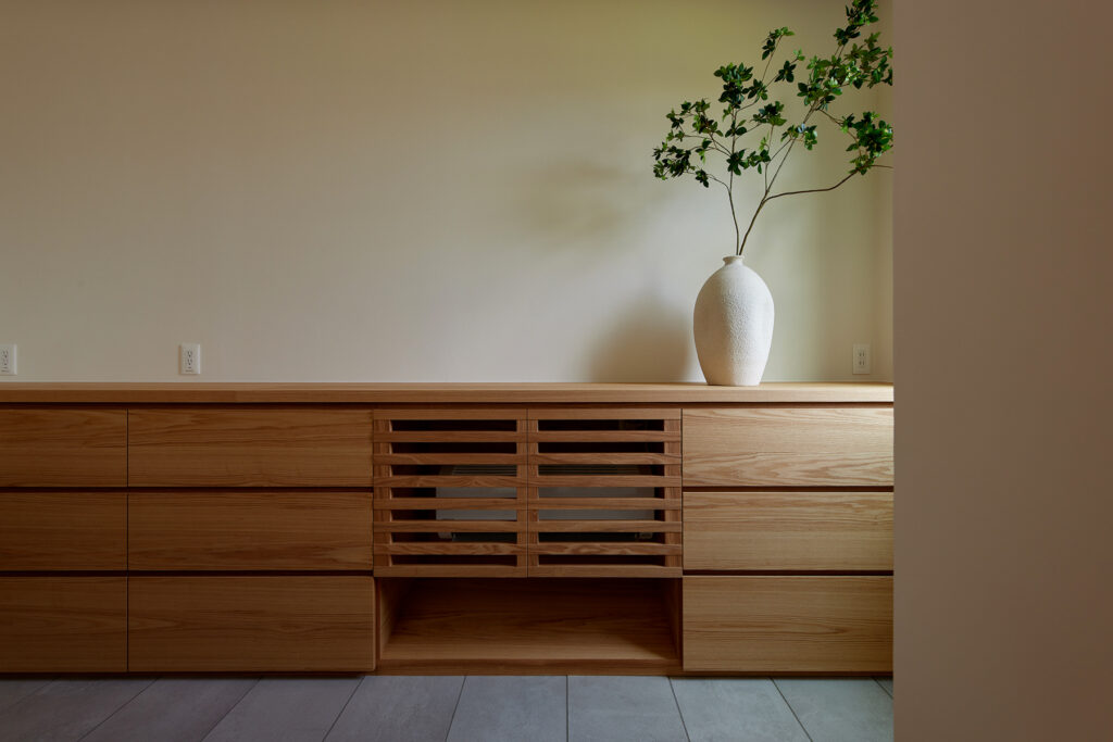 足元に触れる床のぬくもり、壁の優しい質感。自然素材に囲まれた室内は、季節の移ろいとともに表情を変えます。夏はさらりとした肌触りが心地よく、冬はあたたかみを感じさせてくれます。朝の柔らかな日差しが素材の風合いを際立たせ、夕暮れ時には落ち着いた雰囲気を醸し出します。素材そのものが呼吸するような空間が、暮らしに静かな喜びをもたらします。