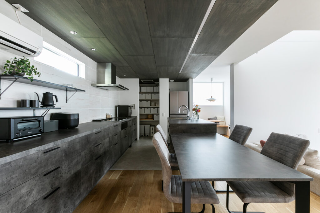 モダン ホテルライク ラグジュアリー 高気密・高断熱 家事が楽 ペット パッシブデザイン 開放感 ランドリールーム 耐震 ワークスペース 高性能 和室 大屋根 パントリー 長期優良住宅 デッキ 収納 犬と暮らす G2以上 土間 2階建て 内外がつながる家 大開口 回遊動線 中庭 畳コーナー 吹き抜け ファミリークローゼット アイランドキッチン ピットリビング