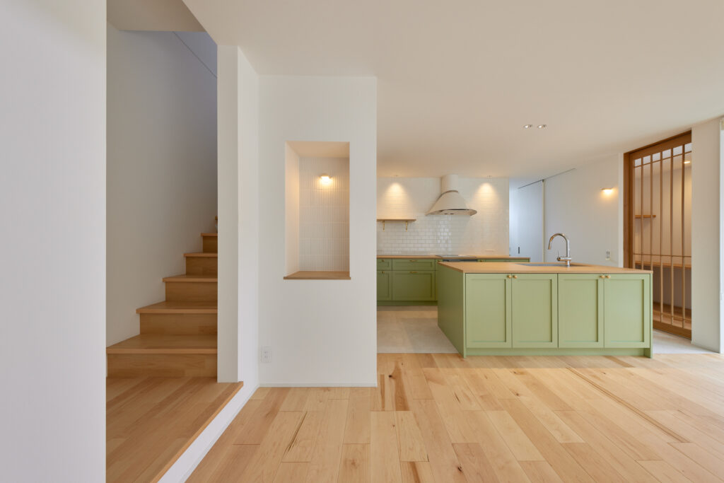 それぞれの時間を大切にしながらも、家族が顔を合わせる瞬間を増やしたい。そんな思いから生まれた住まいは、デザインと機能を丁寧に織り交ぜた空間です。淡い色合いが室内に柔らかさをもたらし、窓の向こうに広がる景色が、日々の暮らしに季節の移ろいを届けます。家族それぞれの居場所がありながら、気配を感じられる距離感が心地よさを生んでいます。