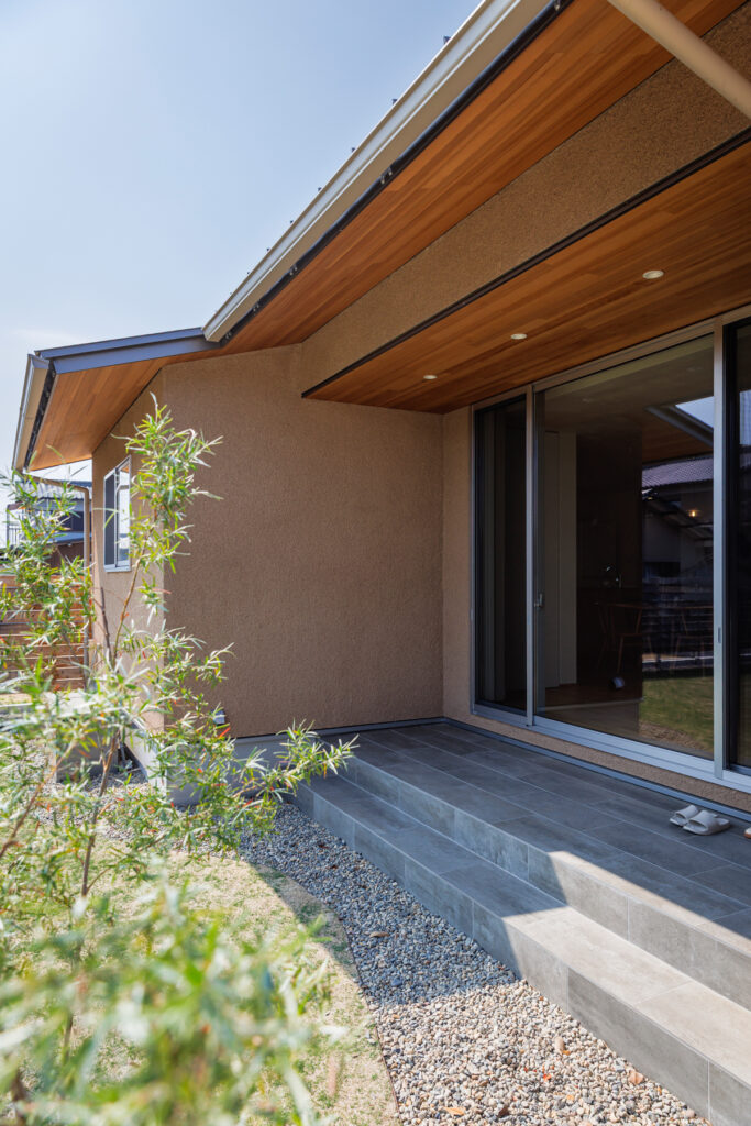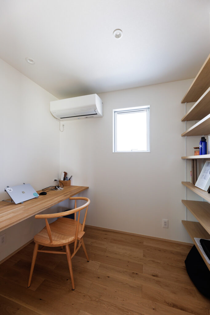 在宅で仕事をするご主人のために、集中できる環境を整えながら、家族が自然に顔を合わせられる間取りを実現したOさん邸。ゆったりとした敷地に建つ平屋は、お互いの存在を感じながらも、それぞれの時間を尊重できる住まいです。