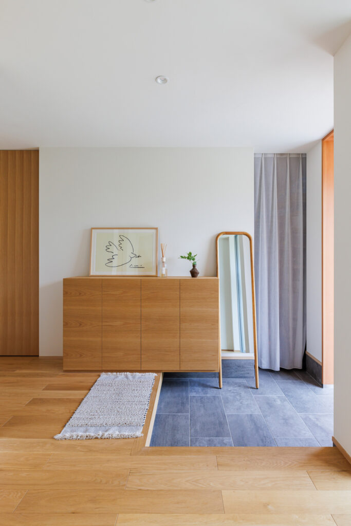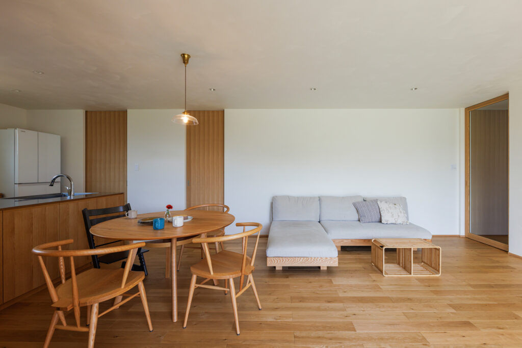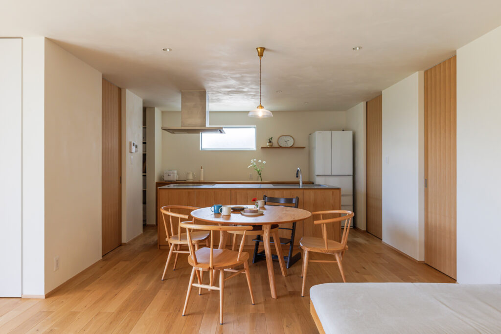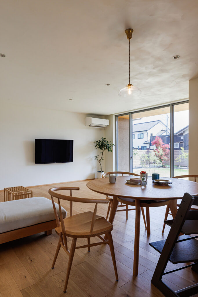 朝の柔らかな日差しが差し込むと、壁や床に繊細な陰影が浮かび上がります。時間とともに移ろう光の表情が、同じ場所でも異なる印象を生み出し、暮らしに豊かなリズムをもたらします。窓辺に腰を下ろして外を眺める時間や、家族で食卓を囲むひととき。何気ない日常のなかに、小さな発見と喜びが満ちています。