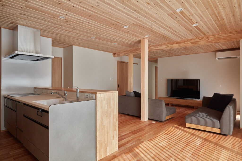 ご両親が「おかやま住宅工房」にリフォームを依頼していた縁で、見学会へ何度も足を運んだYさん。「壊すのは惜しい」という同社の提案から、建て替えではなく実家再生を決意されました。構造柱を生かした間取りを家族全員で考案。かつての暗さが解消され、大空間と開口部から隅々まで光と風が届く、想像を超える快適な住まいが完成しました。