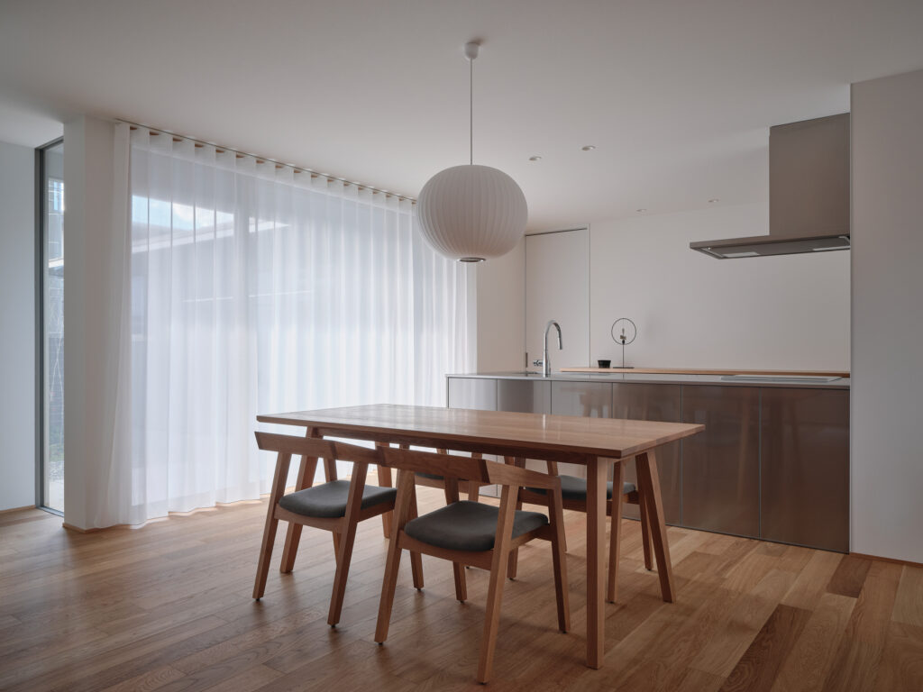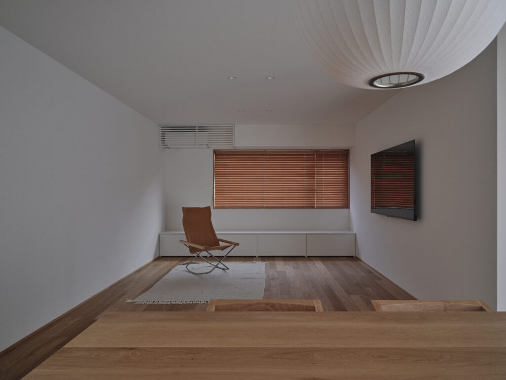 リビングの先に広がる中庭が、室内に奥行きとやわらかな明るさをもたらします。大きく開かれた内と外の境界が、その距離感を曖昧にし、視線は自然と庭へ。すべての部屋をワンフロアにまとめた住まいは、移動の負担を減らすだけでなく、家族の気配をいつも身近に感じさせてくれます。