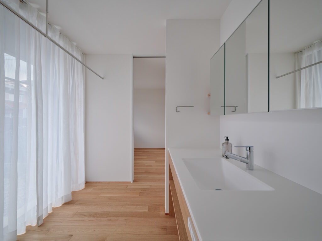 洗濯や片付けを行う家事の空間には、たっぷりと自然の光が注ぎ込み、日常の作業を心地よい時間へ。一日の多くを過ごす場所だからこそ、快適さが暮らし全体の豊かさにつながります。また、愛車を身近に感じられるスペースを設けることで、趣味の時間が自然と日常に溶け込み、暮らしに彩りを添えています。