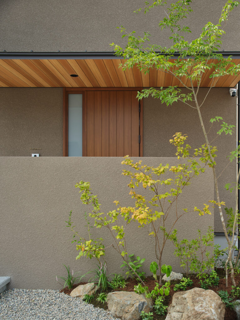 窓の向こうに広がる庭の木々が、季節ごとに表情を変えていきます。春には新緑が芽吹き、夏には深い緑が涼やかな影を落とし、秋には色づいた葉が住まいを彩ります。朝の柔らかな日差しが差し込むと、葉の揺れる様子が壁に映り込み、自然のアートのよう。庭との距離が近いからこそ、四季の移ろいを身近に感じながら、豊かな時間を過ごせる場所となっています。