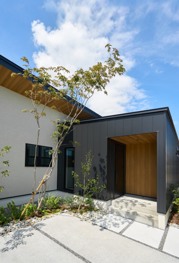 木と白が織りなす、余白のある平屋