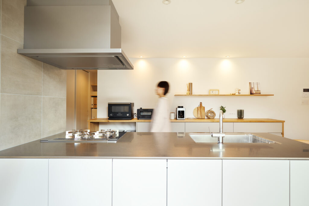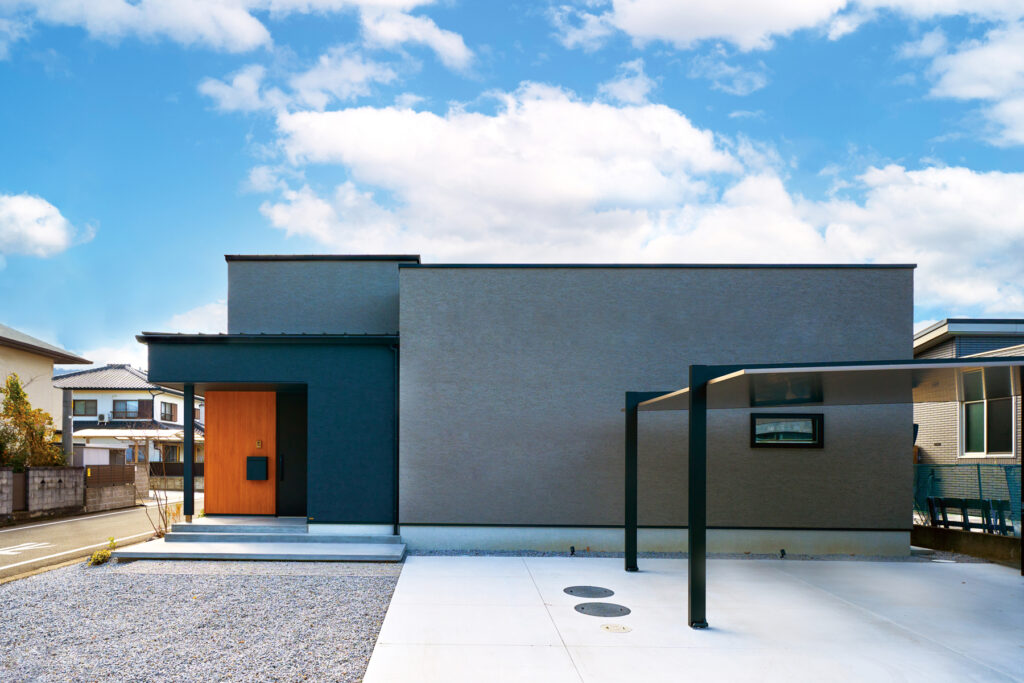 元インテリアコーディネーターの奥さまのセンスが随所に息づく平屋の住まい。グレーを基調に木のぬくもりを丁寧に重ねた空間は、落ち着きと洗練が心地よく調和しています。「ナチュラルでありながらスタイリッシュに」というコンセプトが、外観から邸内の細部にまで一貫して貫かれています。