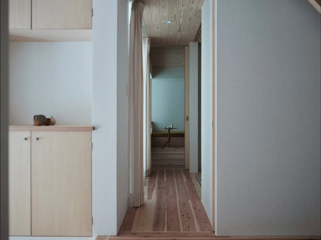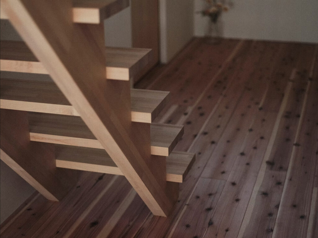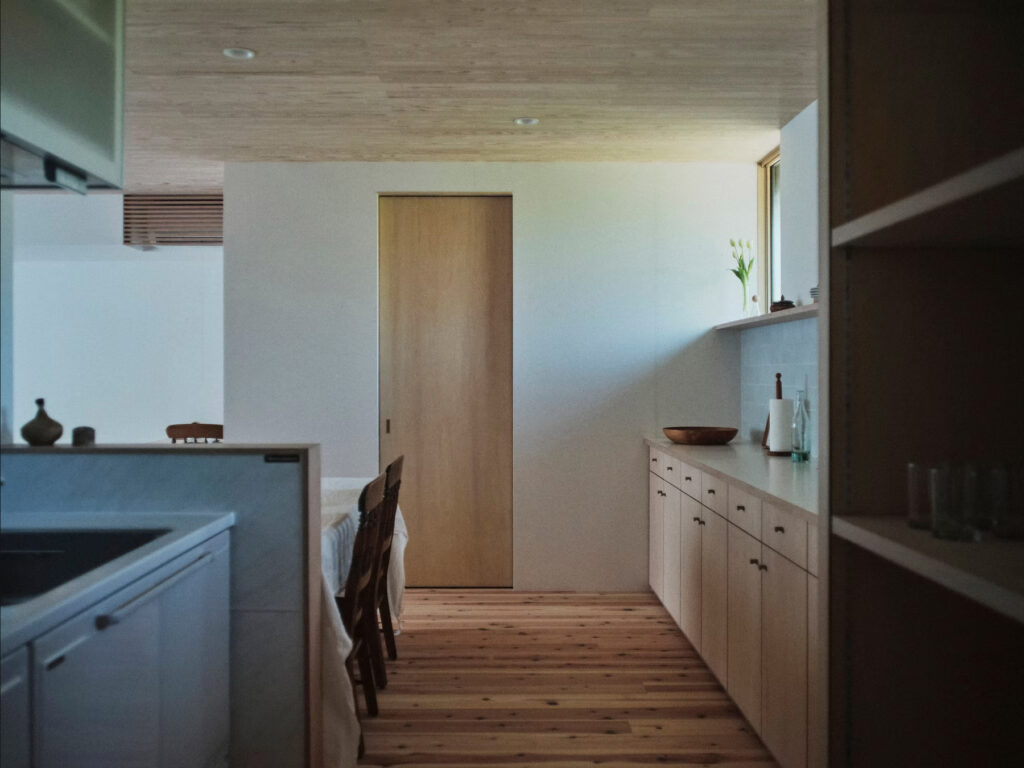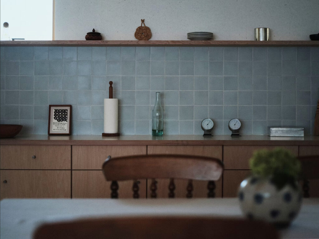リネンコットンのソファクッションや陶器のソケット、100角タイルのキッチンなど、意匠の細部にまでこだわりが息づく空間。丁寧に造作された家具が調和をもたらし、シンプルながらもあたたかみのあるデザインが日々の暮らしに心地よいリズムをもたらします。自然素材の風合いが時とともに深まり、長く住み継げる住まいとなっています。